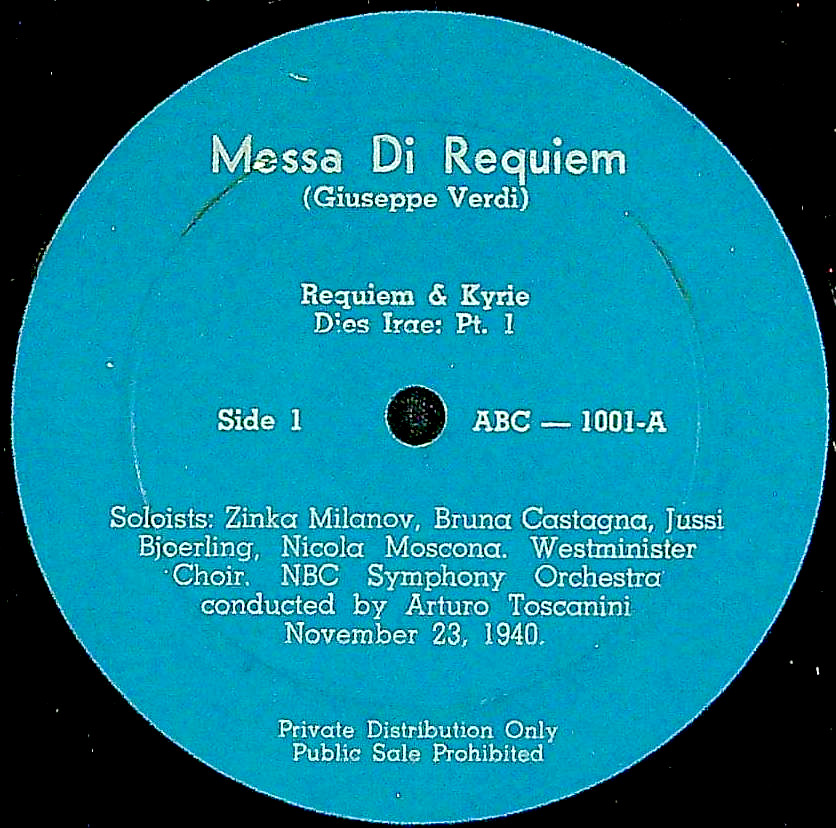 演奏者: Z.ミラノフ, J.ビョルリング(t)N.モスコーナ(bs)A.トスカニーニ指揮NBCso.
