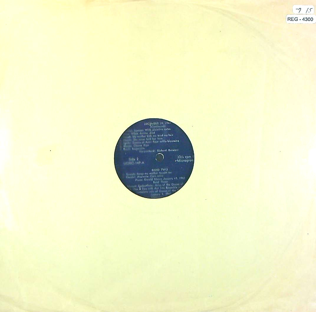 トピックス:紺/銀段付GG, 紙製内袋入, 元々ジャケは付属しない, マイクログルーヴ, NOT FOR SALE, UNIQUE OPERA RECORDSはモノラルしか存在しない?, 初入荷, BBC放送所有音源と思われる, 組物ではなく一枚完結