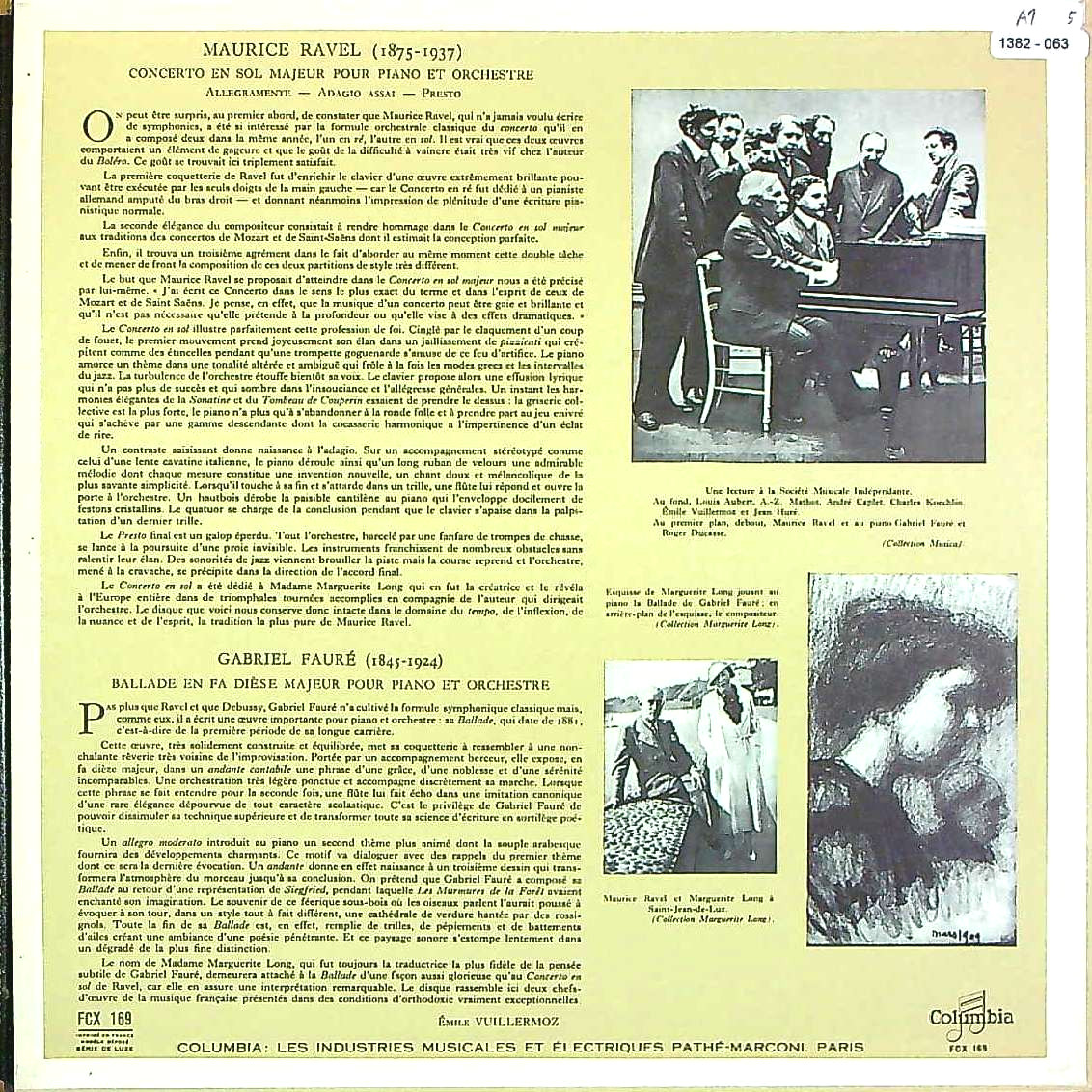 商品コード:1382-063[COLUMBIA] M.ロン(pf)/ フォーレ:Pfと管弦楽のためのバラードOp.19, ラヴェル:Pf協奏曲