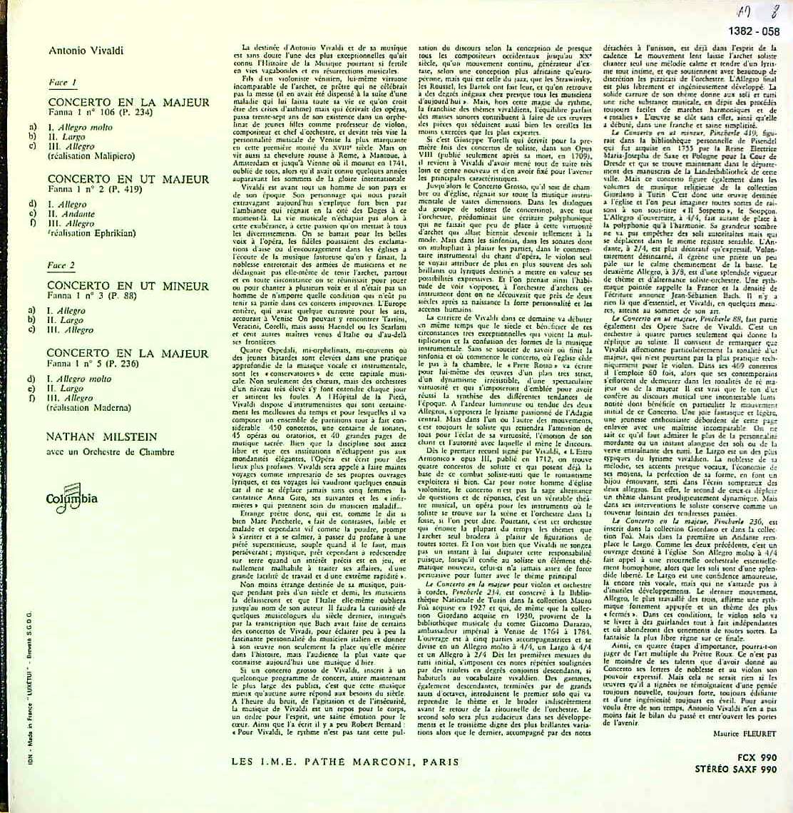 商品コード:1382-058[COLUMBIA] N.ミルシテイン(vn)室内o./ ヴィヴァルディ:Vn協奏曲集Vol.1(4曲)