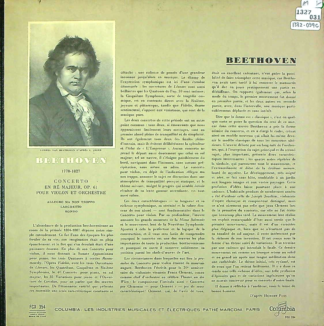 商品コード:1382-054c[COLUMBIA] D.オイストラフ(vn)/ ベートーヴェン:Vn協奏曲Op.61
