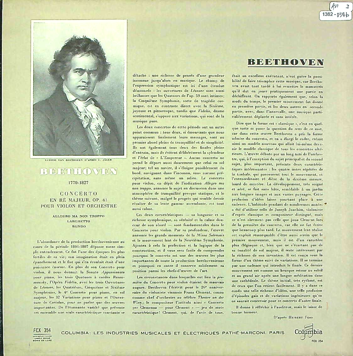 商品コード:1382-054b[COLUMBIA] D.オイストラフ(vn)/ ベートーヴェン:Vn協奏曲Op.61