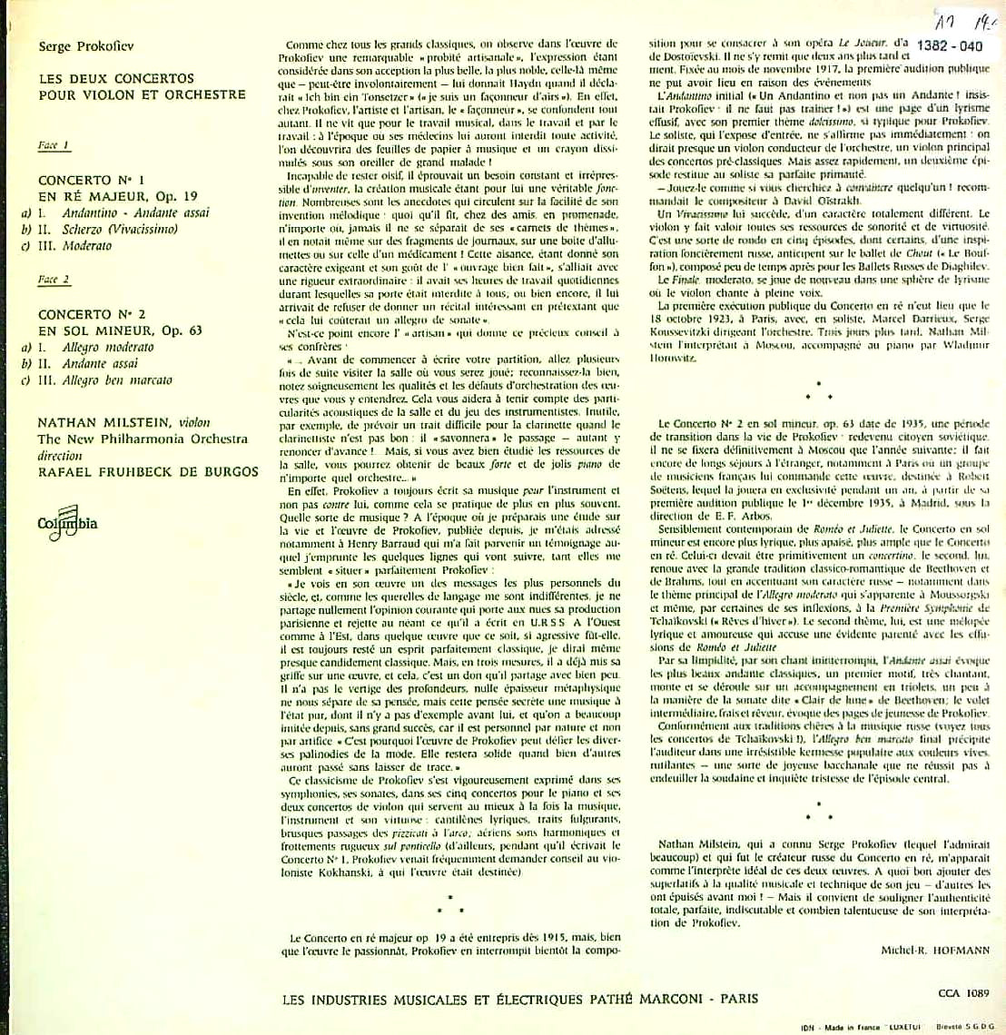 商品コード:1382-040[COLUMBIA] N.ミルシテイン(vn)/ プロコフィエフ:Vn協奏曲1番Op.19, Vn協奏曲2番Op.63
