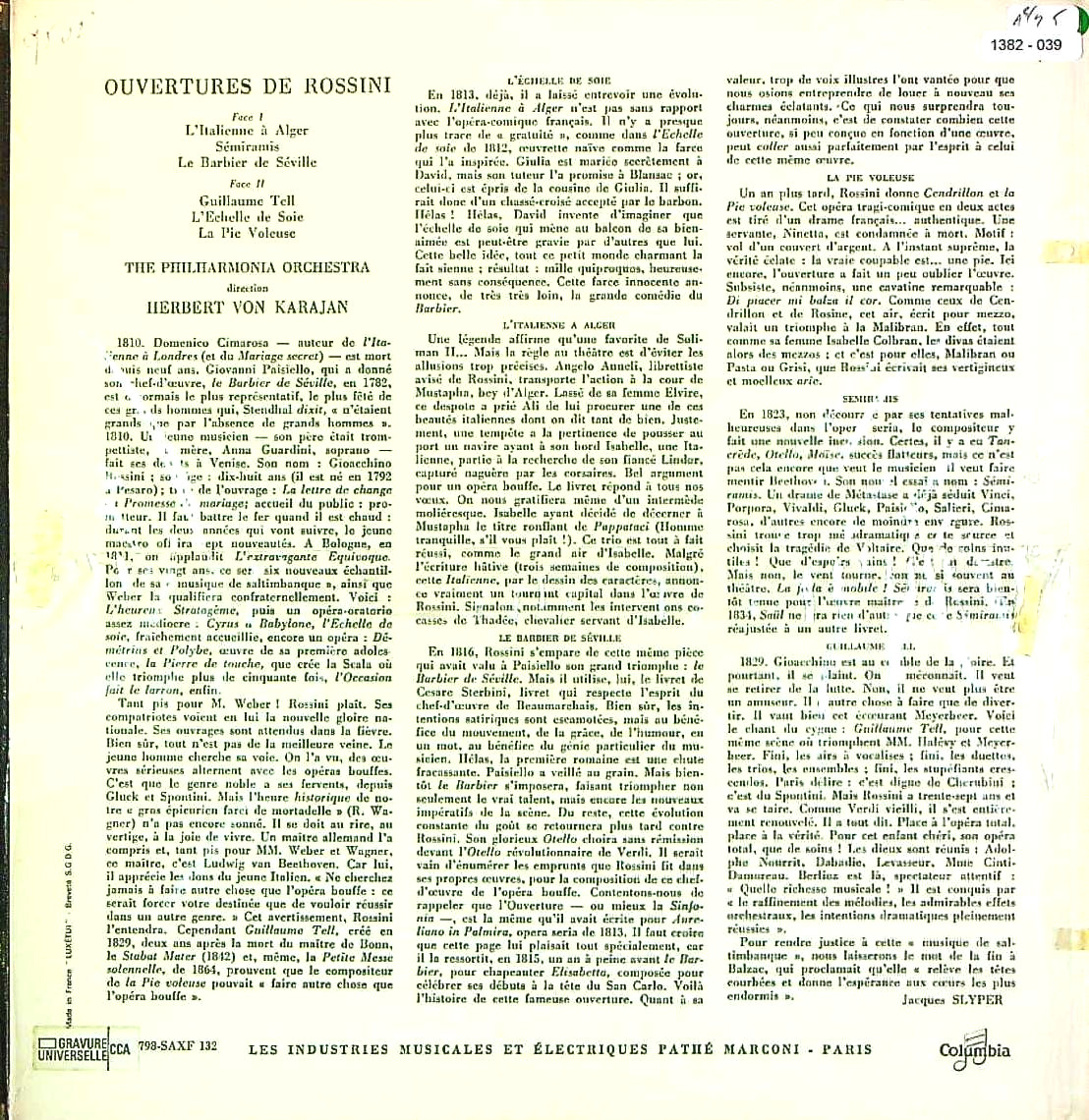 商品コード:1382-039[COLUMBIA] H.v.カラヤン/ ロッシーニ:序曲集/アルジェのイタリア女, セミラーミデ, セビーリャ 他