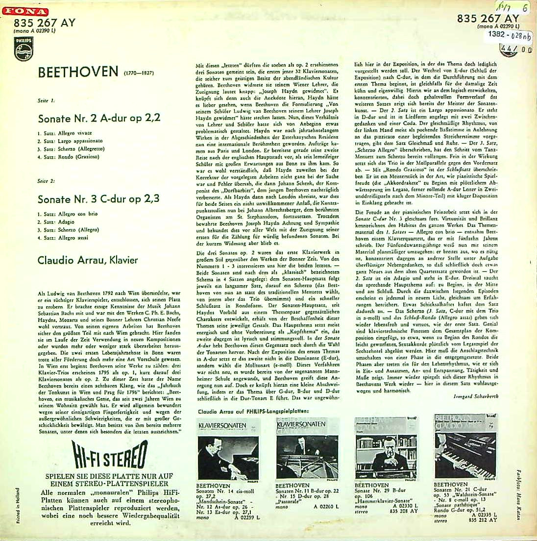 商品コード:1382-028nb[PHILIPS] C.アラウ(pf) / ベートーヴェン:Pfソナタ2番Op.2-2, Pfソナタ3番Op.2-3