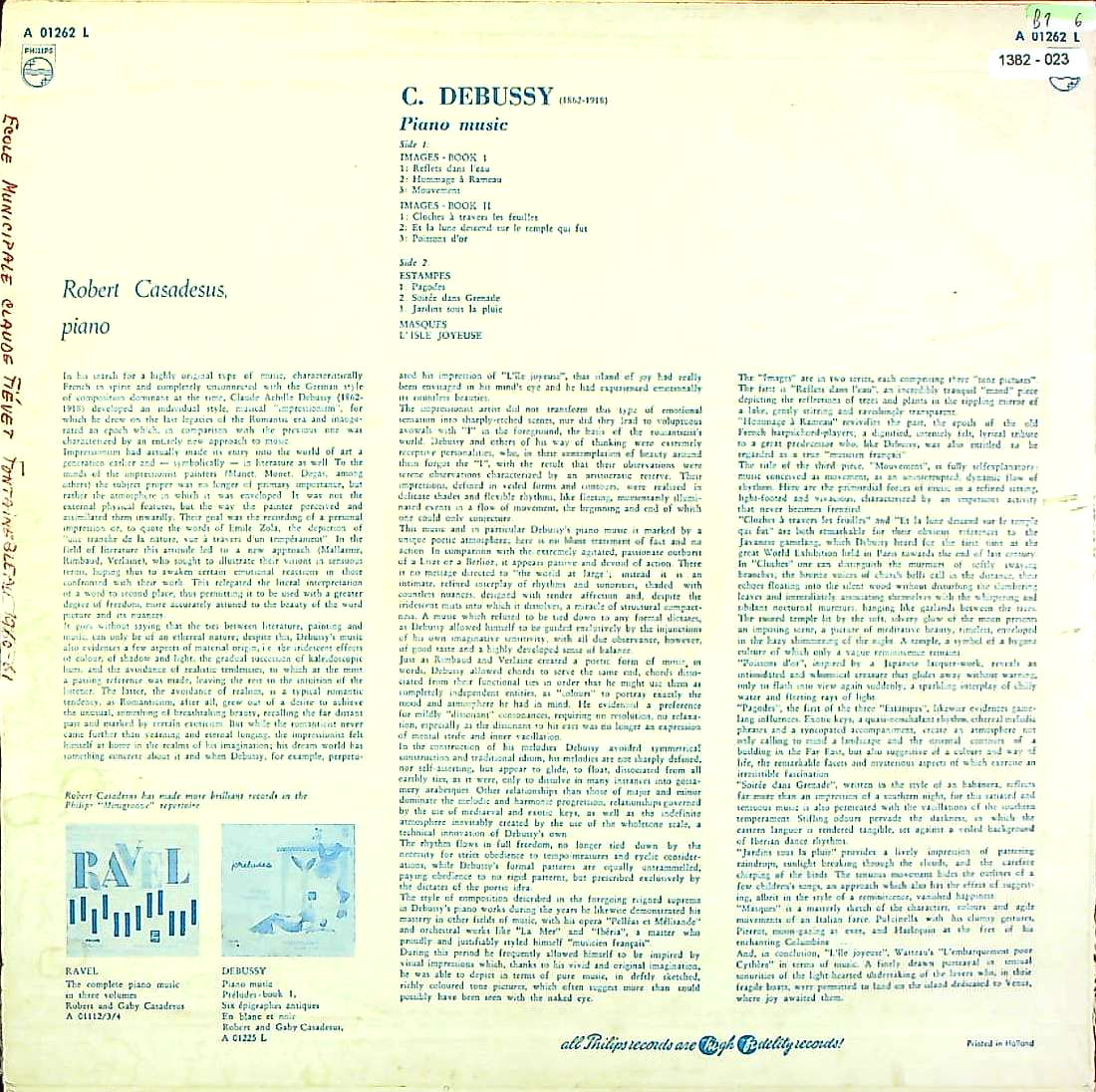 商品コード:1382-023p[PHILIPS] R.カサドシュ(pf) / ドビュッシー:Pf作品集Vol.2/「映像」第1集&第2集, 版画, 仮面, 喜びの島