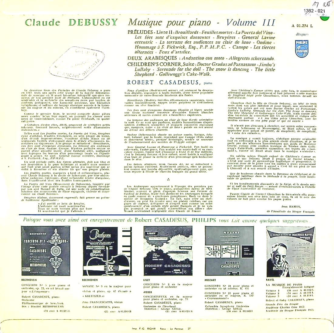 商品コード:1382-021[PHILIPS] R.カサドシュ(pf) G.カサドシュ(pf)/ ドビュッシー:Pf作品集(完結)