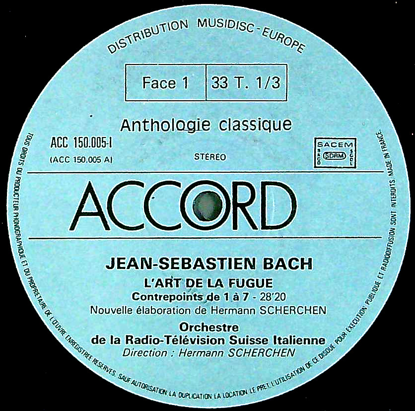 商品コード:1382-004[ACCORD] H.シェルヘン/ バッハ(シェルヘン編):フーガの技法BWV.1080