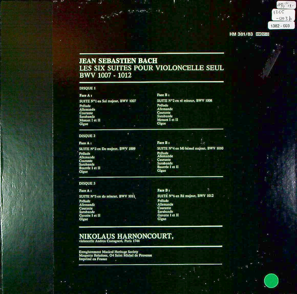 商品コード:1382-003[HM] N.アーノンクール(vc) / バッハ:無伴奏Vc組曲(全6曲)B.1007~1012