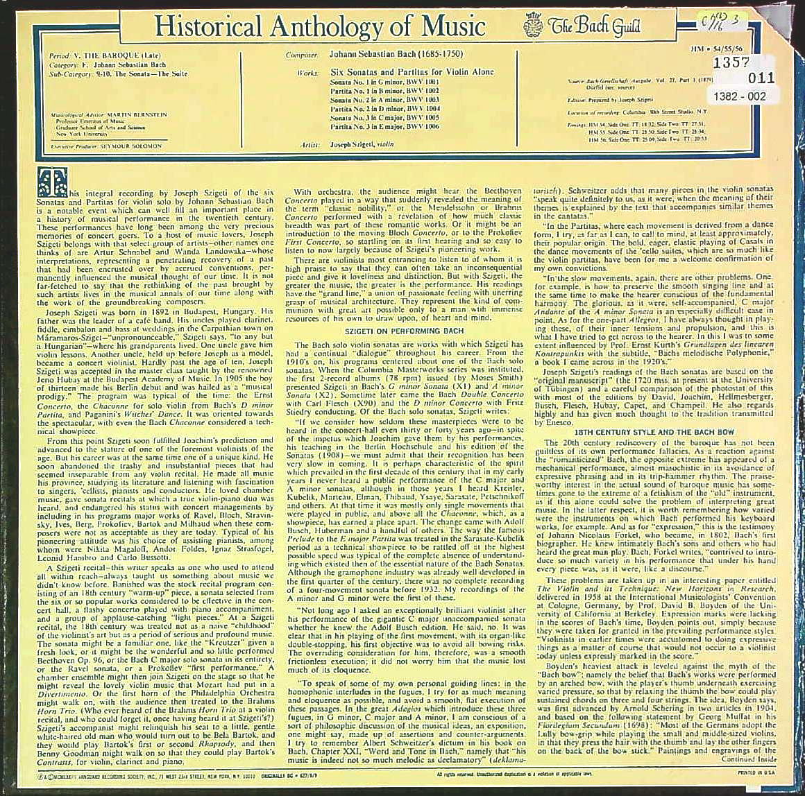 商品コード:1382-002n[VANGUARD] J.シゲティ(vn) / バッハ:無伴奏Vnソナタとパルティータ(全6曲)B.1001~1006