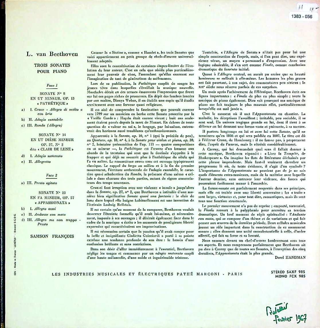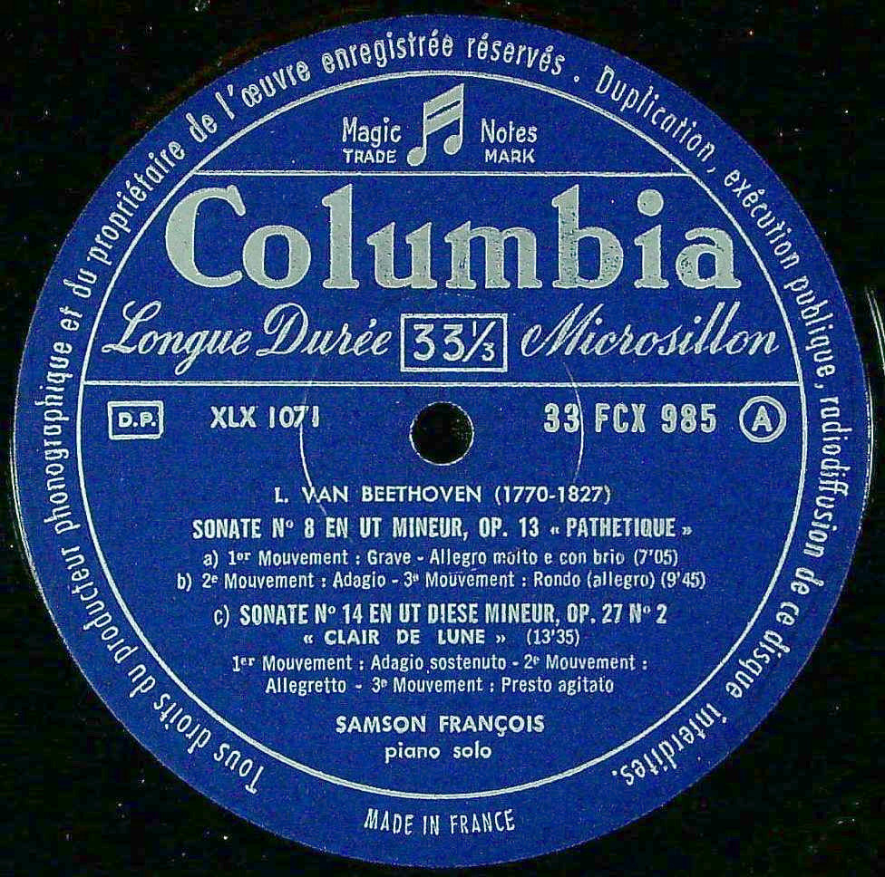 商品コード:1383-056[COLUMBIA] S.フランソワ(pf) / ベートーヴェン:Pfソナタ集/8番Op.13「悲愴」, 14番Op.27-2「月光」, 23番Op.57「熱情」