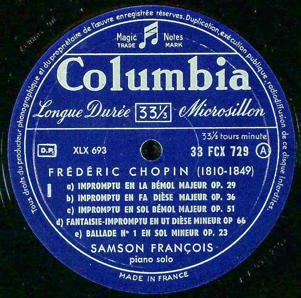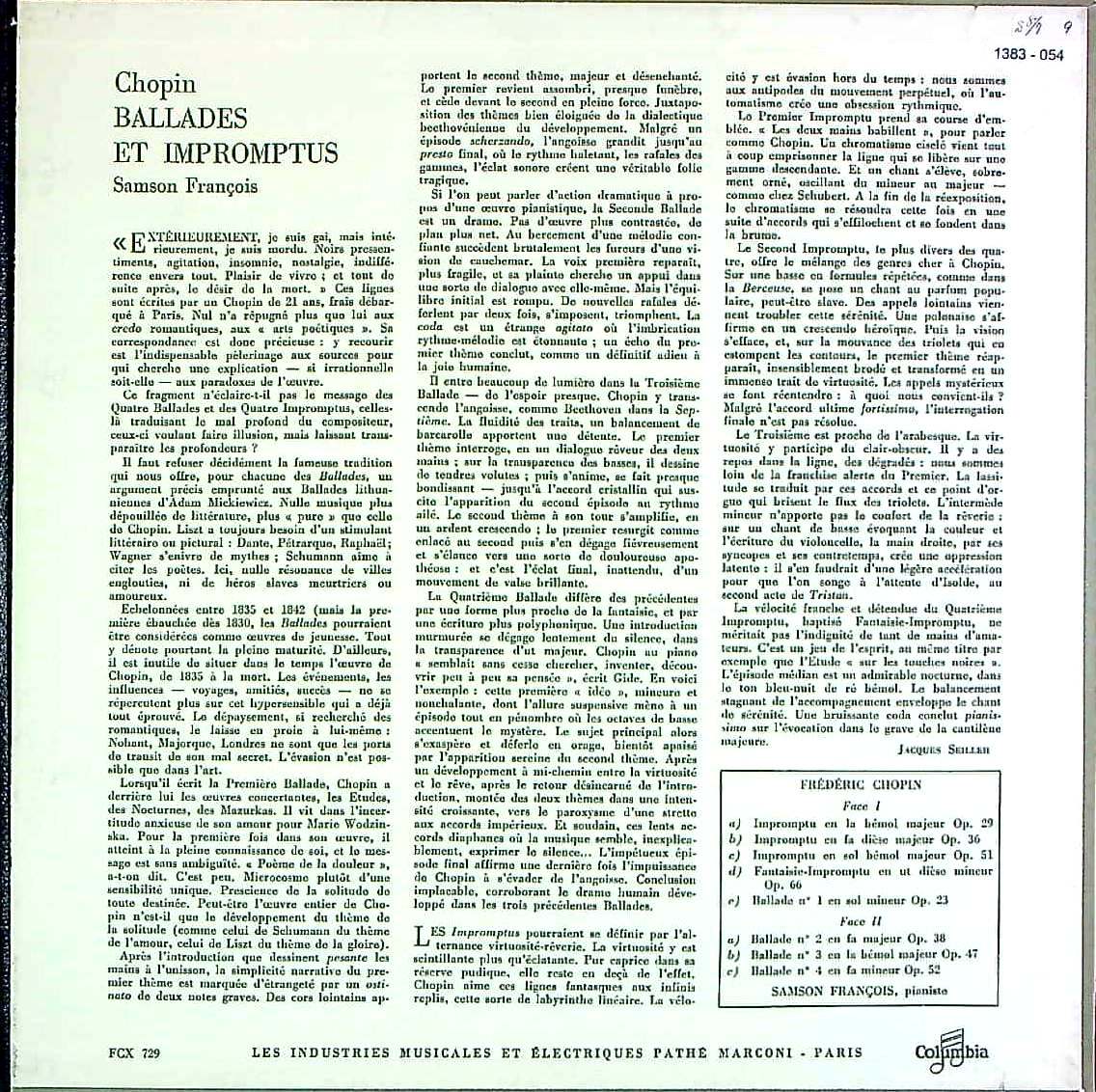 商品コード:1383-054[COLUMBIA] S.フランソワ(pf) / ショパン:即興曲1~3番, 幻想即興曲, バラード1~4番