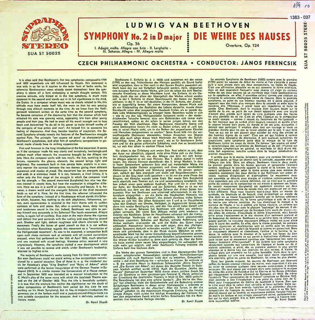 商品コード:1383-037[SUPRAPHON] J.フェレンチク/ ベートーヴェン:交響曲2番Op.36, 献堂式Op.124~序曲
