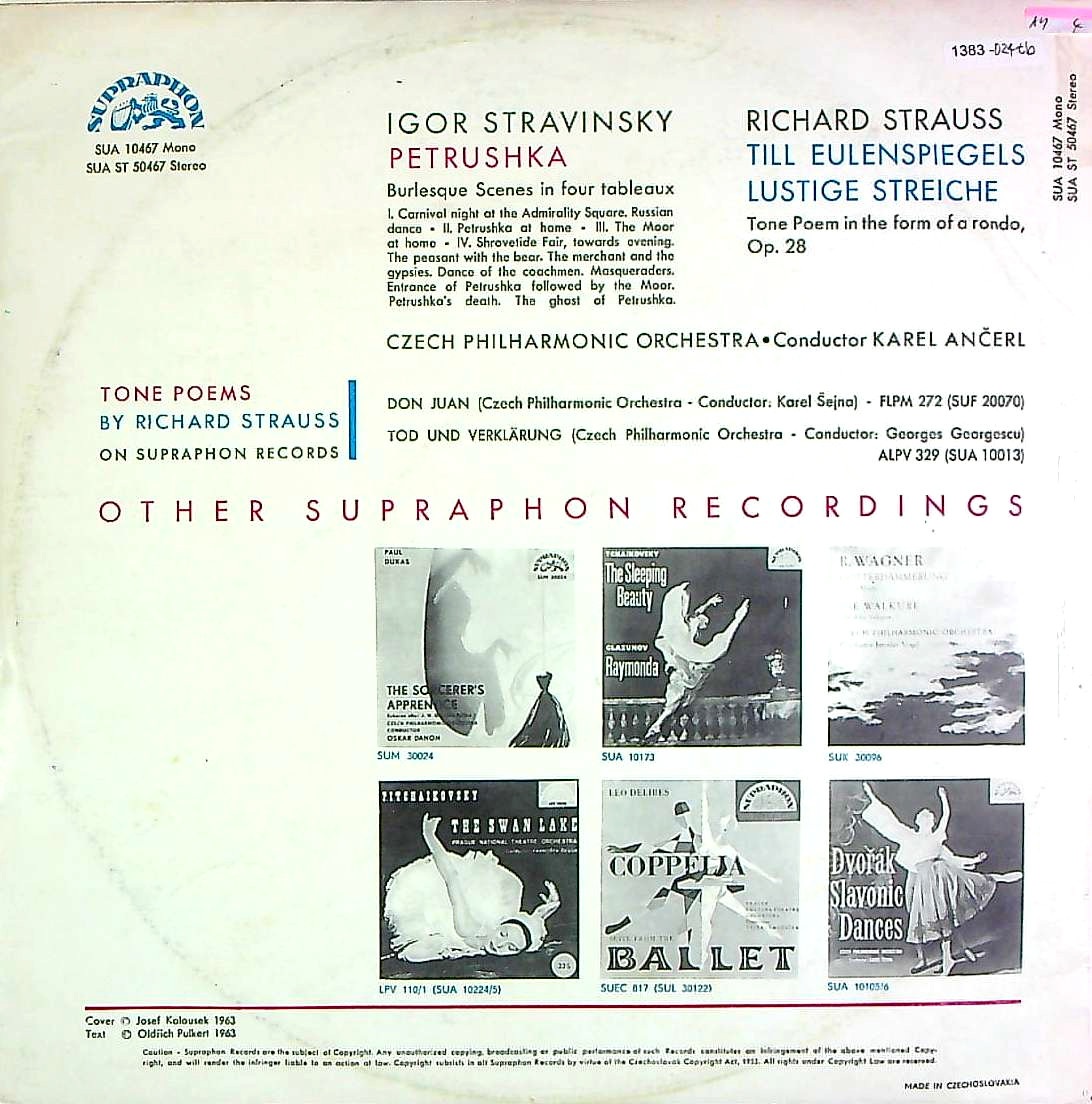 商品コード:1383-024tb[SUPRAPHON] K.アンチェル/ R.シュトラウス:ティル・オイレンシュピーゲルOp.28, ストラヴィンスキー:ペトルーシュカ(1947年版)