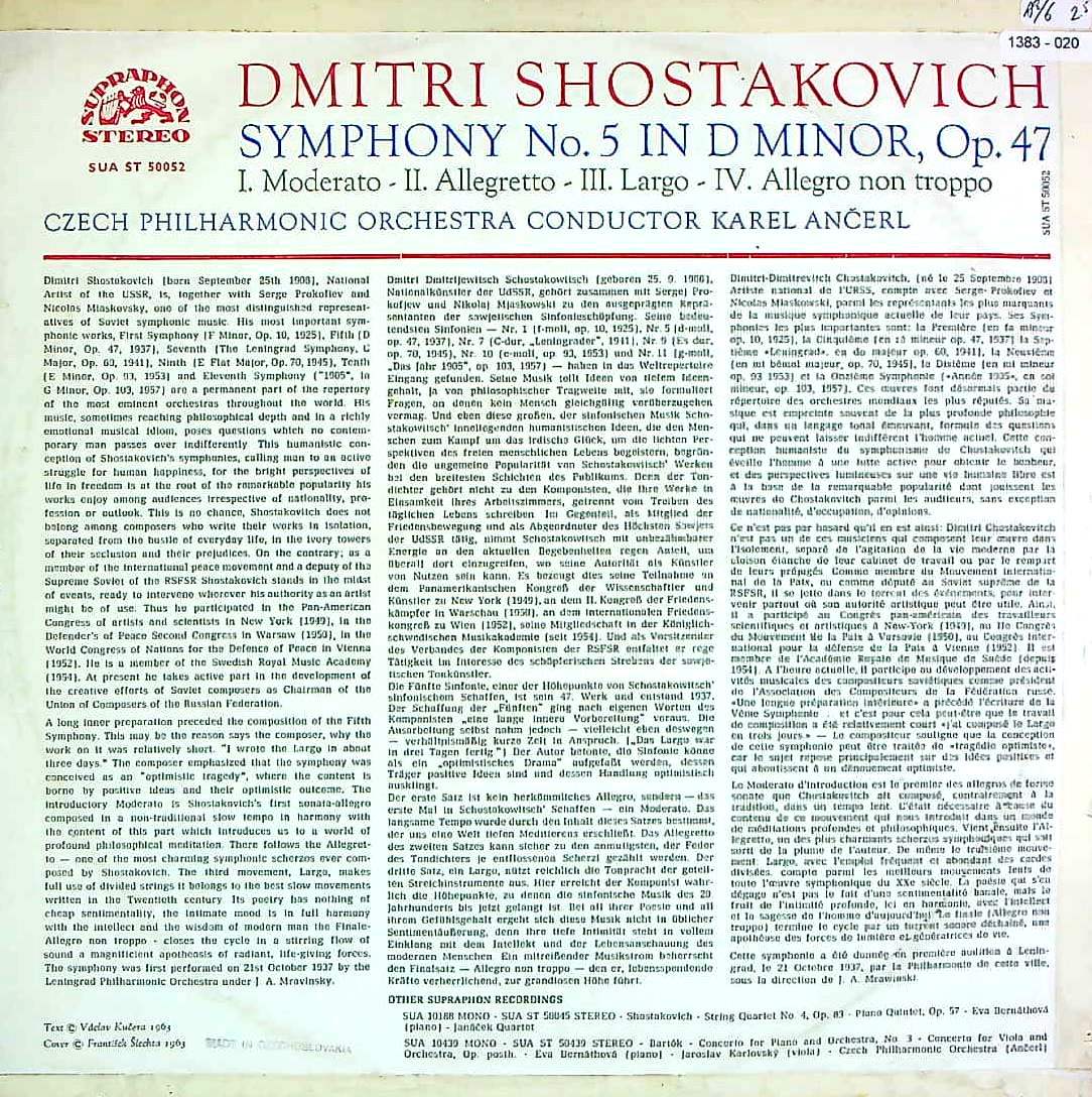 商品コード:1383-020[SUPRAPHON] K.アンチェル/ ショスタコーヴィチ:交響曲5番Op.47「革命」
