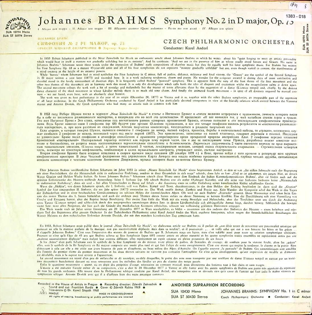 商品コード:1383-018[SUPRAPHON] K.アンチェル/ ブラームス:交響曲2番Op.73