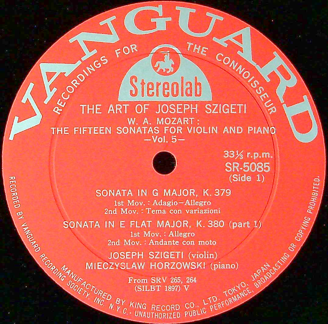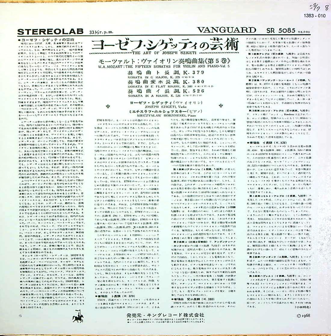 商品コード:1383-010[VANGUARD] J.シゲティ(vn)/ モーツァルト:Vnソナタ集Vol.5/Vnソナタ35番K.379, 36番K.380, 42番K.526