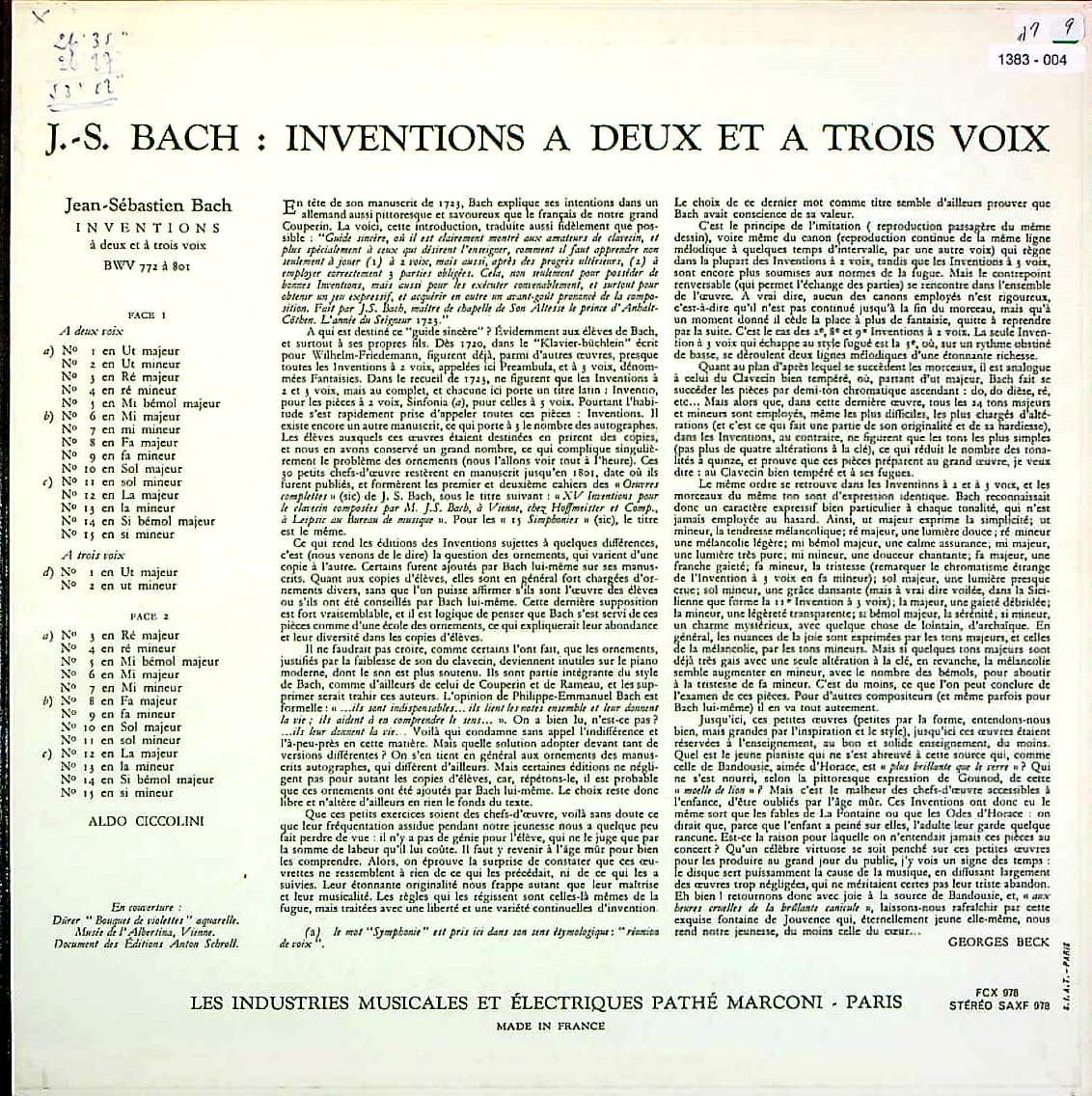 商品コード:1383-004[COLUMBIA] A.チッコリーニ(pf) / バッハ:インヴェンションとシンフォニアBWV.772~801(全曲)