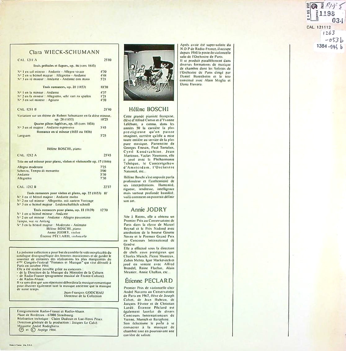 商品コード:1384-046b[CALLIOPE] H.ボッシ(pf) 他/ クララ・シューマン:Pf三重奏曲Op.17, ロマンスOp.22 他