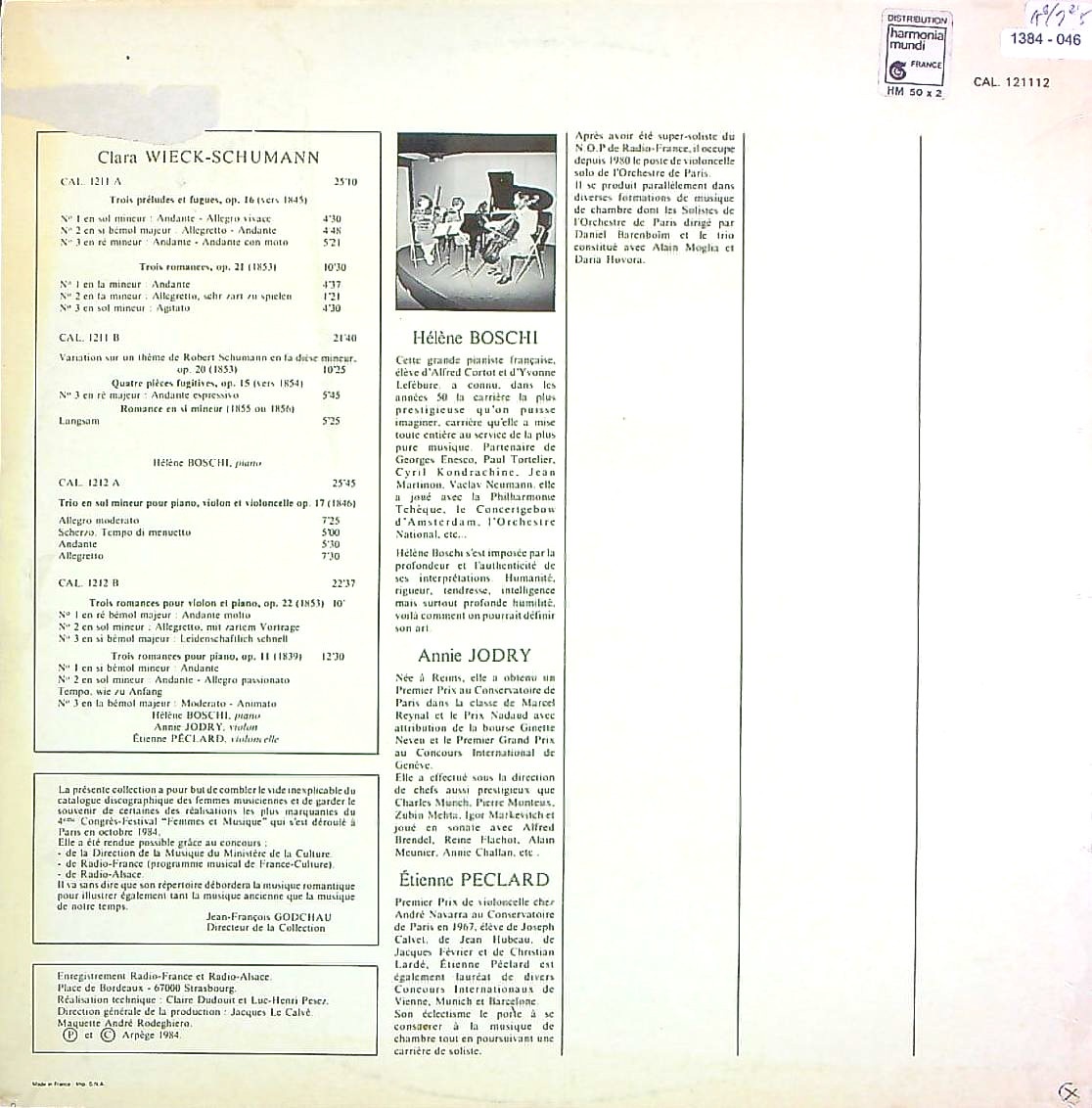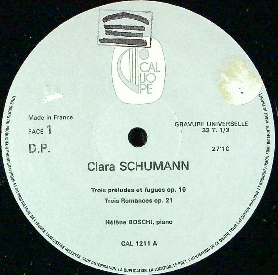 商品コード:1384-046[CALLIOPE] H.ボッシ(pf) 他/ クララ・シューマン:Pf三重奏曲Op.17, ロマンスOp.22 他