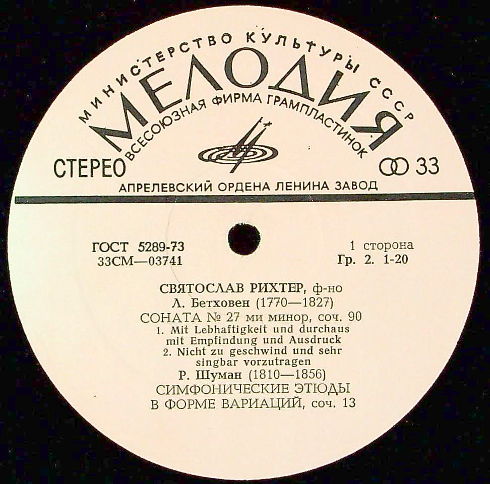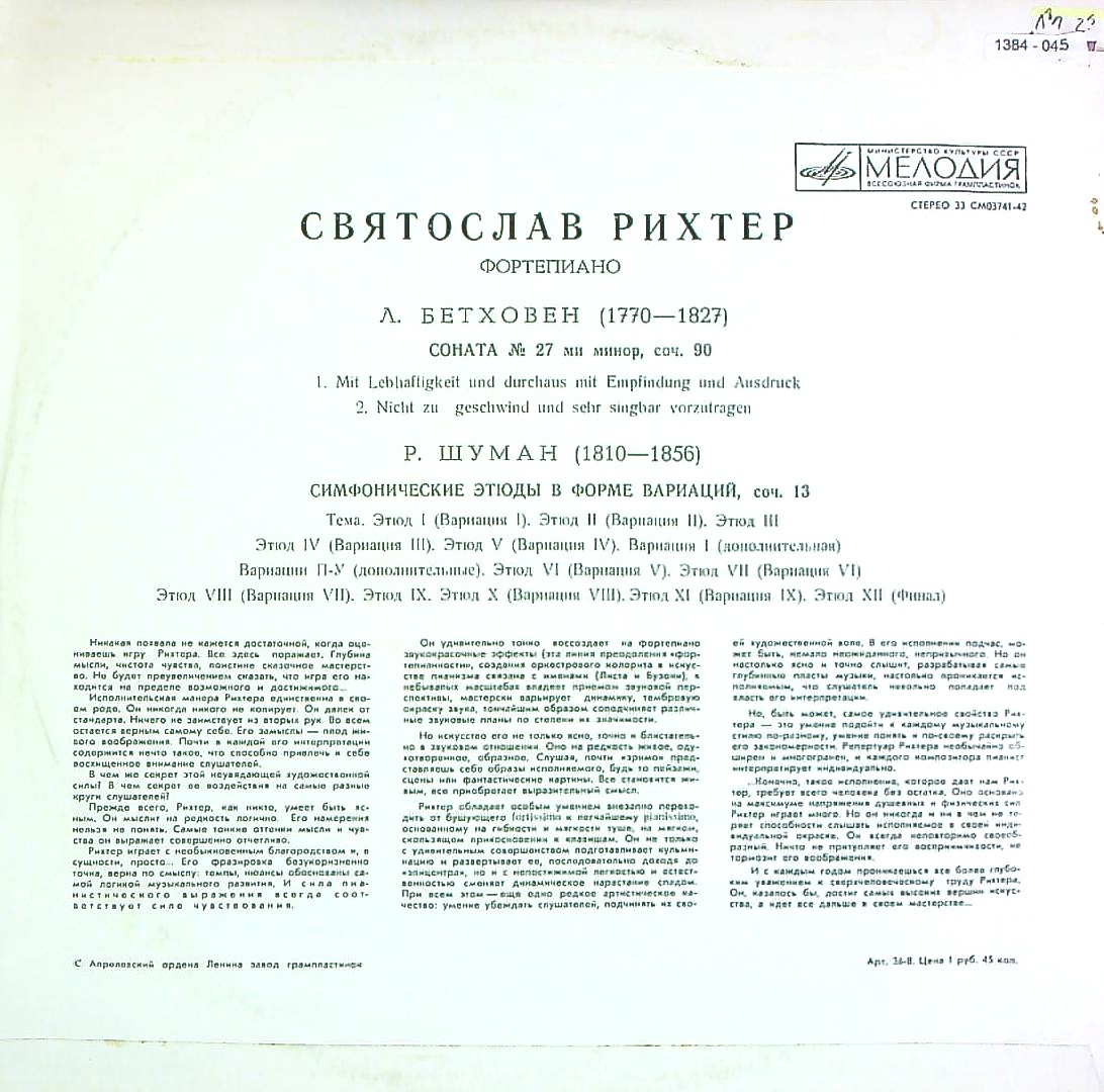 商品コード:1384-045n[MELODIYA] S.リヒテル(pf) / ベートーヴェン:Pfソナタ27番Op.90, シューマン:交響的練習曲Op.13