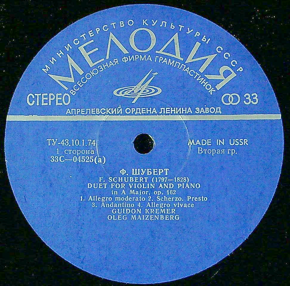 商品コード:1384-042n[MELODIYA] G.クレーメル(vn)/ シューベルト:VnとPfのための二重奏曲Op.162, 変奏曲Op.160