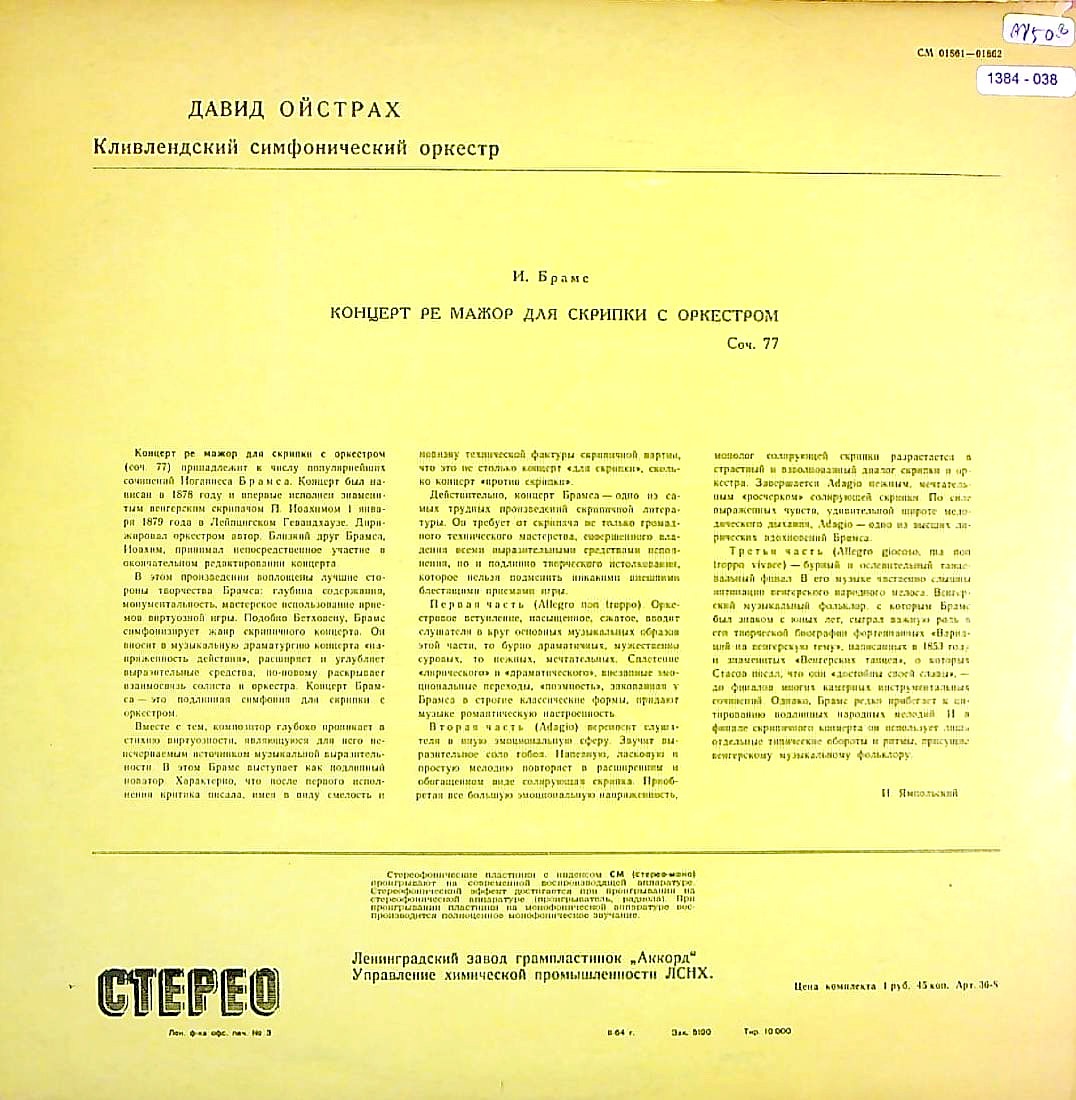 商品コード:1384-038n[MELODIYA] D.オイストラフ(vn) / ブラームス:Vn協奏曲Op.7