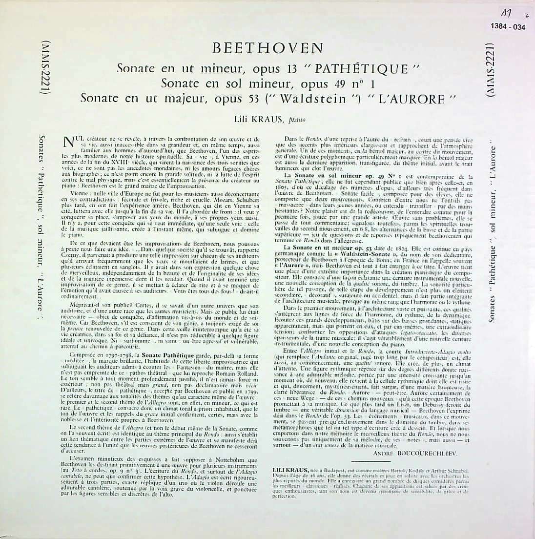 商品コード:1384-034[GUILDE du DISQUE] L.クラウス(pf) / ベートーヴェン:Pfソナタ集/8番Op.13「悲愴」, 19番Op.49-1, 21番Op.53「ワルトシュタイン」