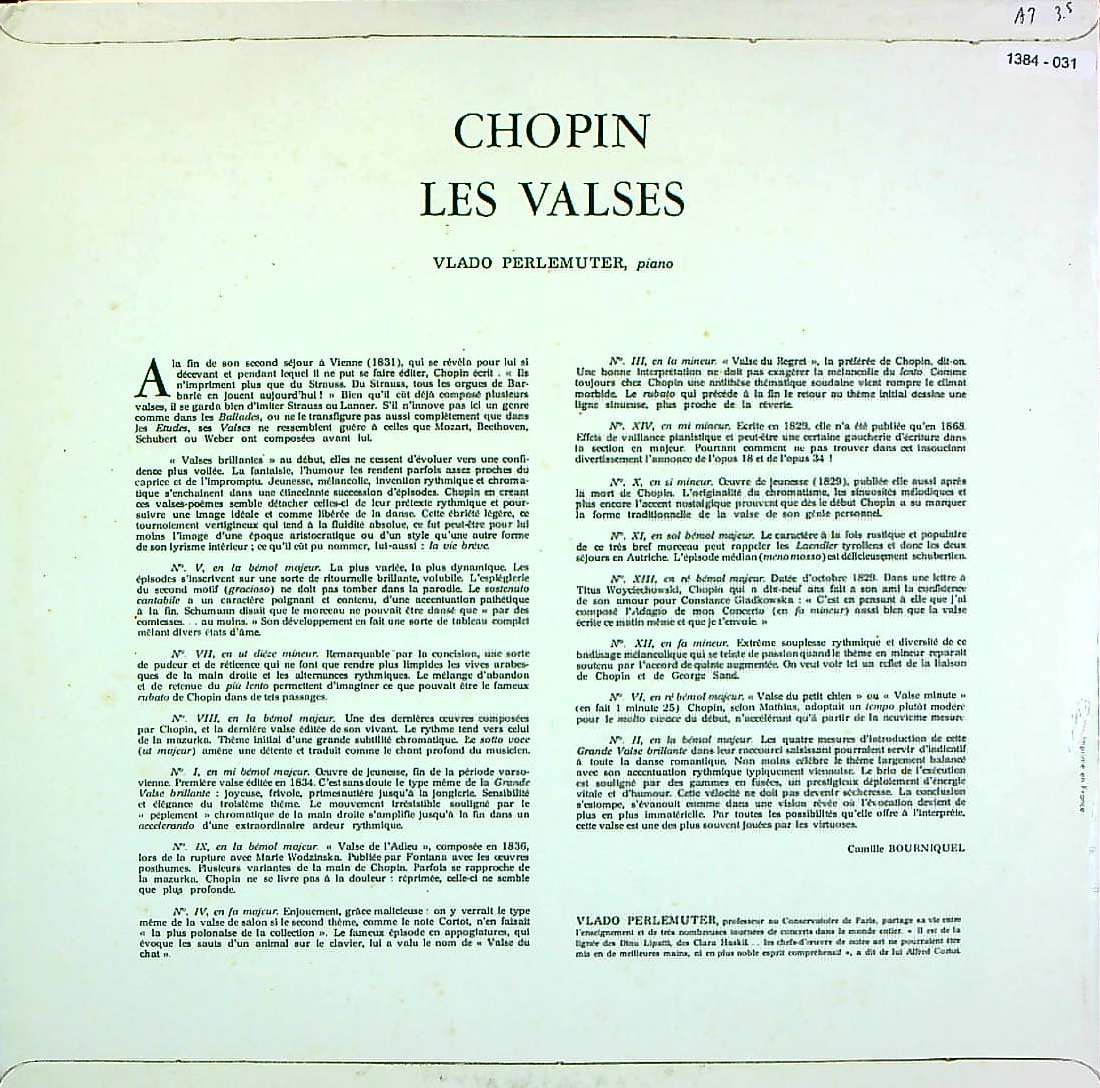 商品コード:1384-031[Concert Hall] V.ペルルミュテール(pf) / ショパン:14のワルツ(全14曲/完結)