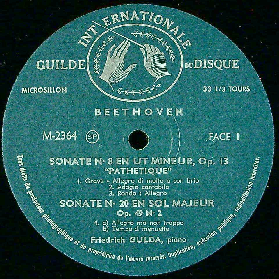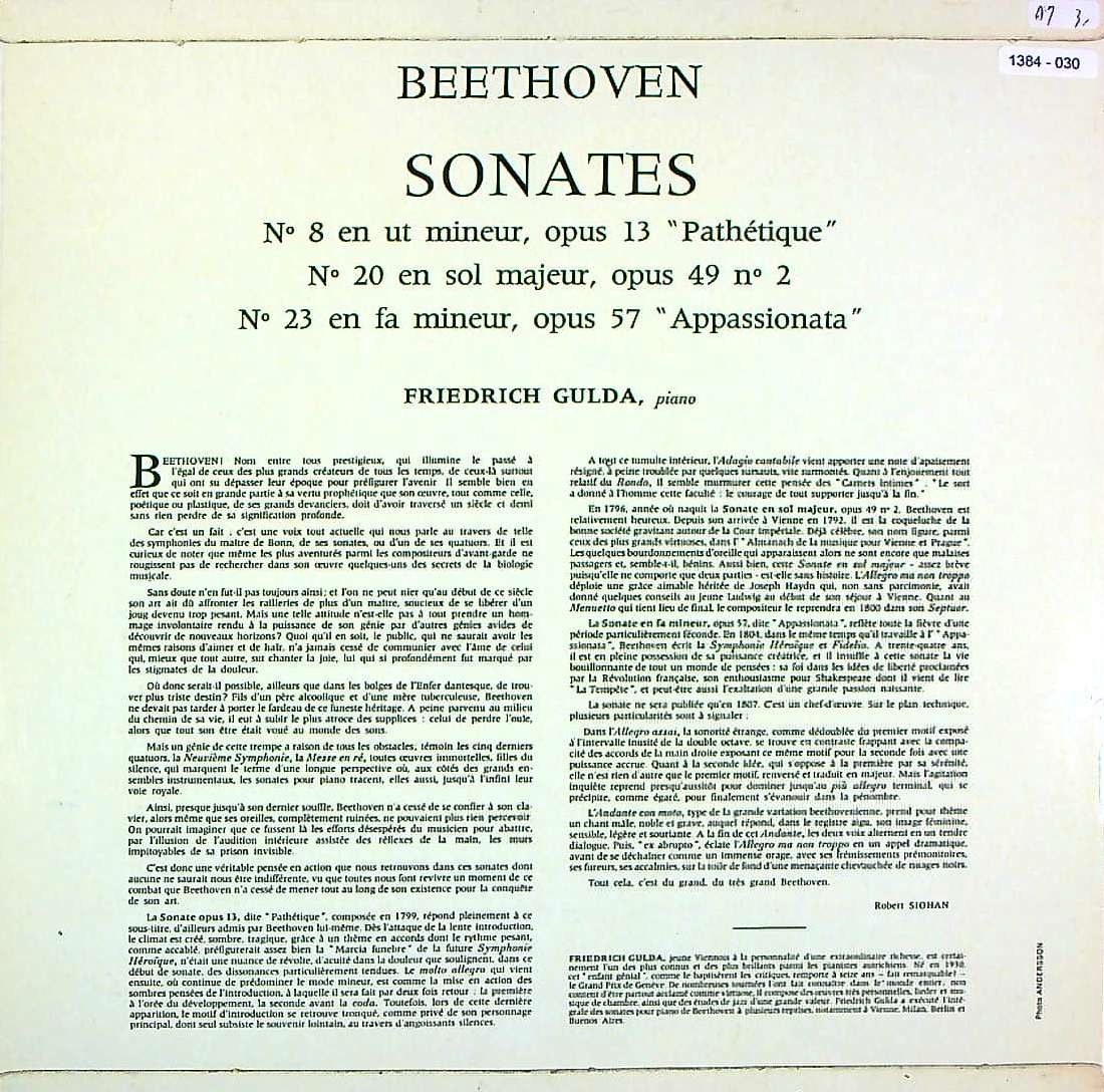 商品コード:1384-030[GUILDE du DISQUE] F.グルダ(pf) / ベートーヴェン:Pfソナタ集/8番Op.13「悲愴」, 20番Op.49-2 , 23番Op.57「熱情」