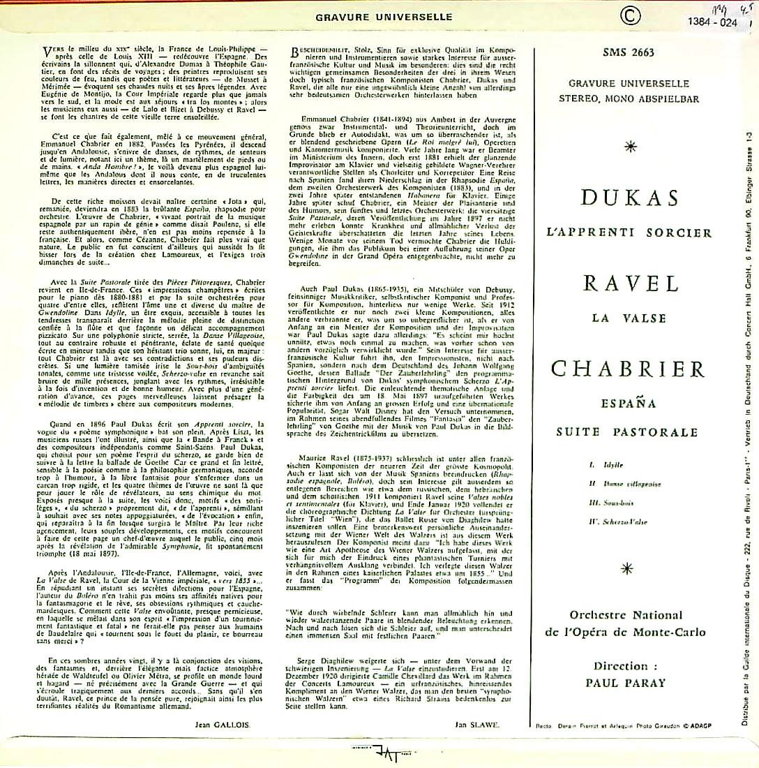 商品コード:1384-024[GUILDE du DISQUE] P.パレー/ デュカス:魔法使いの弟子, ラヴェル:ラ・ヴァルス, シャブリエ:スペイン狂詩曲, 田園組曲
