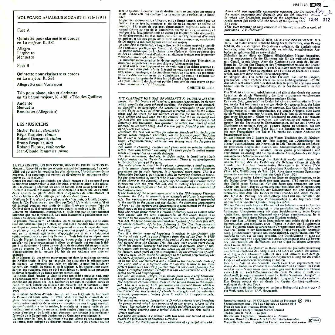 商品コード:1384-012[HM] レ・ミュジシャン/ モーツァルト:Cl五重奏曲K.581, ClトリオK.498