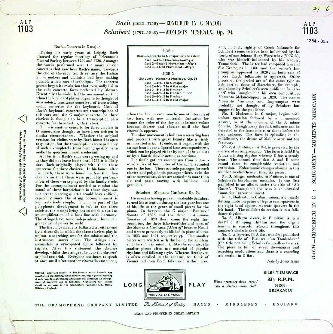 商品コード:1384-005n[HMV] E.フィッシャー. R.スミス, D.マシューズ(pf) / バッハ:3Pf協奏曲2番BWV.1064, シューベルト:楽興の時Op.94