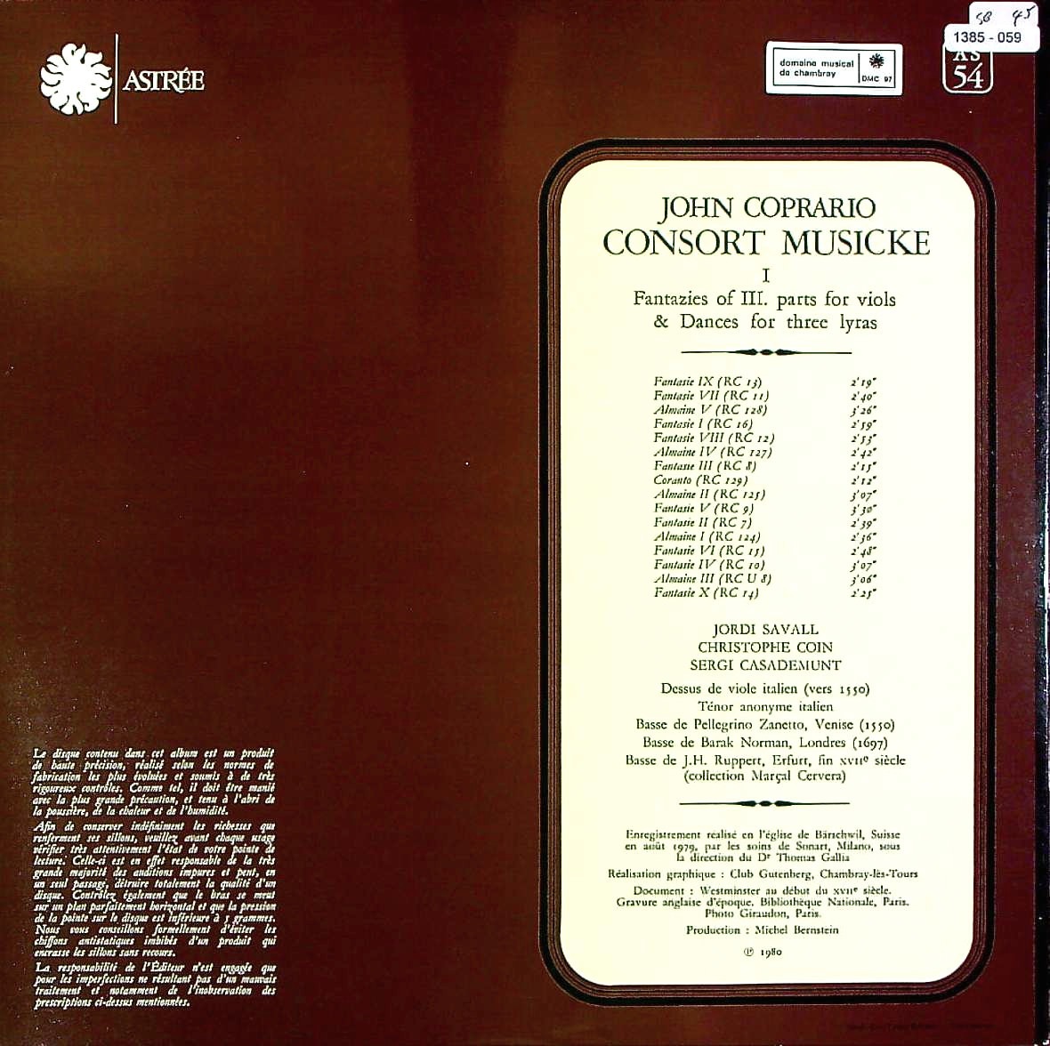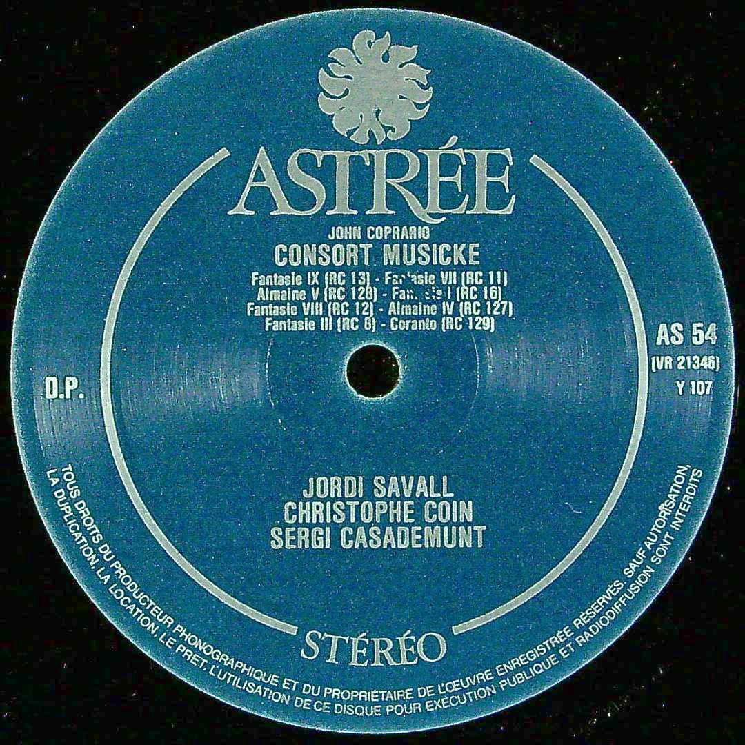 商品コード:1385-059[ASTRÉE] J.サヴァール, C.コワン, S.カサデムント(gamb) / コプラリオ:幻想曲集 (16曲)