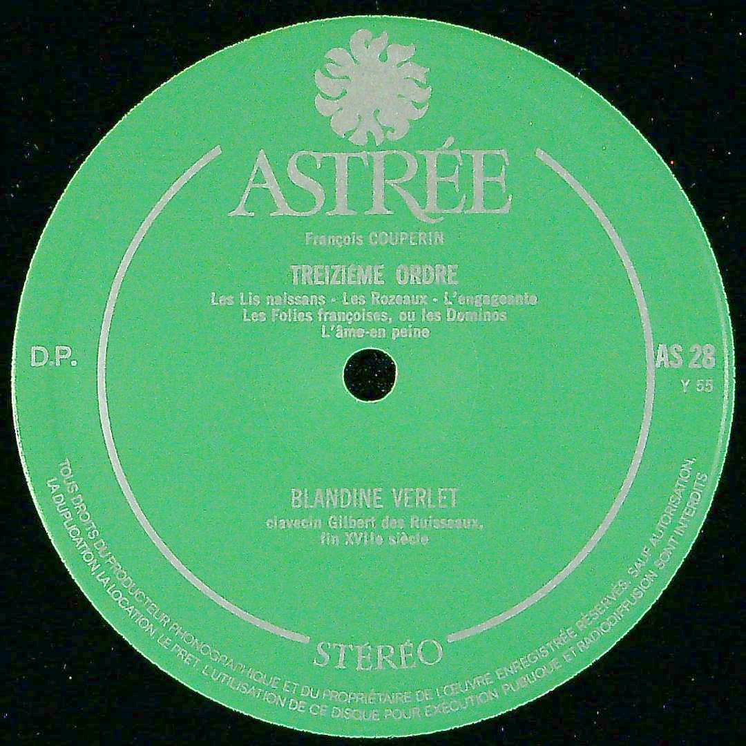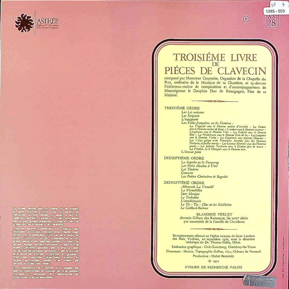 商品コード:1385-053[ASTRÉE] B.ヴェルレ(cemb) / F.クープラン:クラヴサン曲集第13, 17, 18組曲