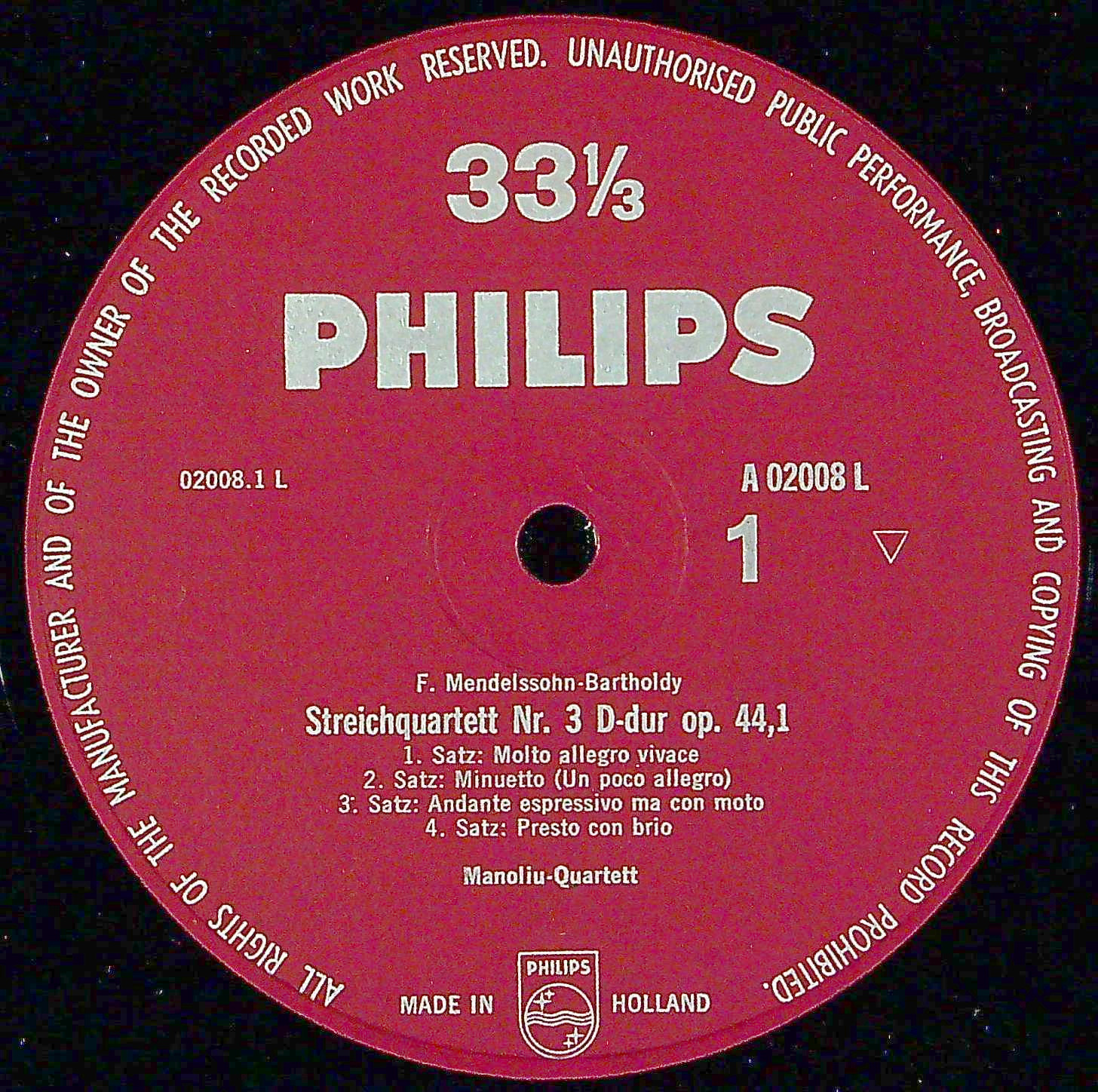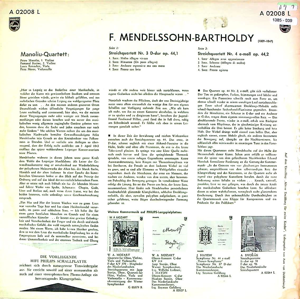 商品コード:1385-039p[PHILIPS] マノリウQt. / メンデルスゾーン:弦楽四重奏曲全集vol.2/3番Op.44-1, 4番Op.44-2