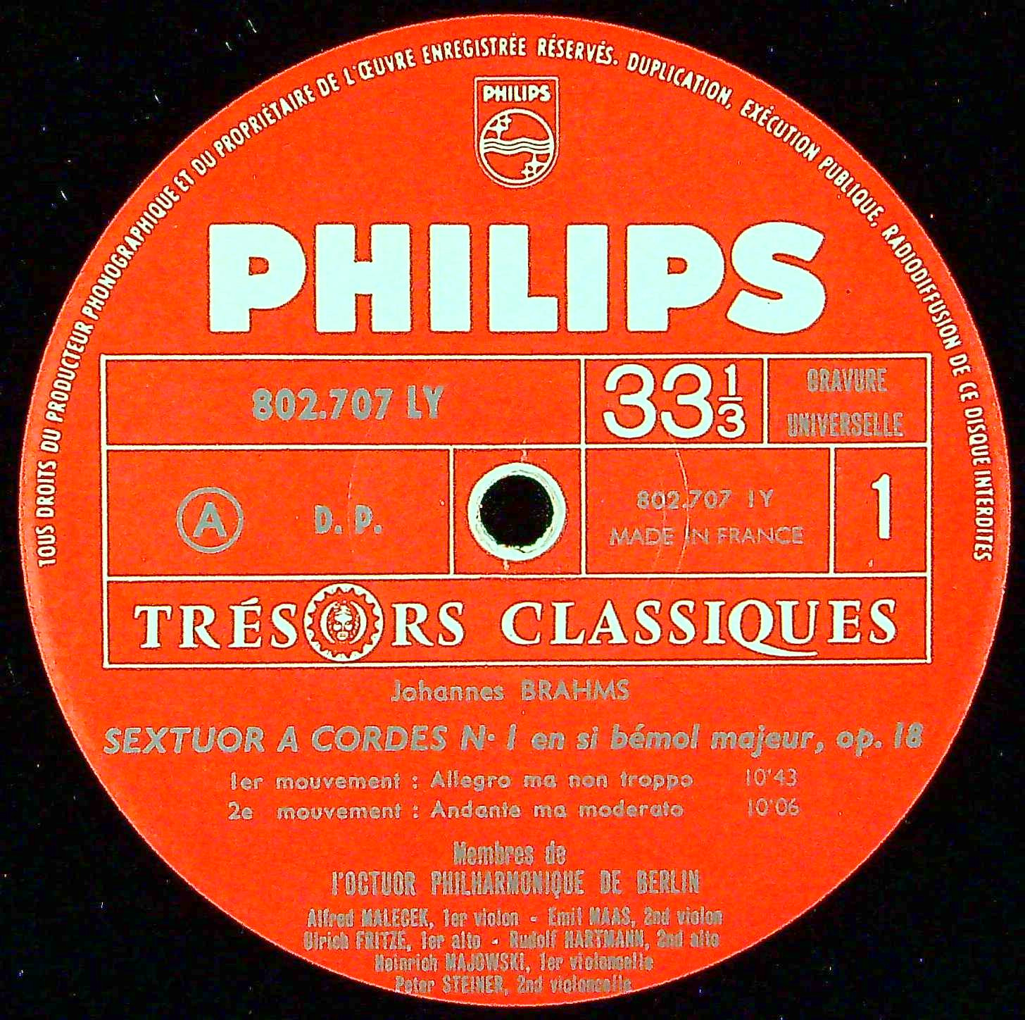 商品コード:1385-034[PHILIPS] ベルリン八重奏団メンバー6人 / ブラームス:弦楽六重奏曲1番Op.18