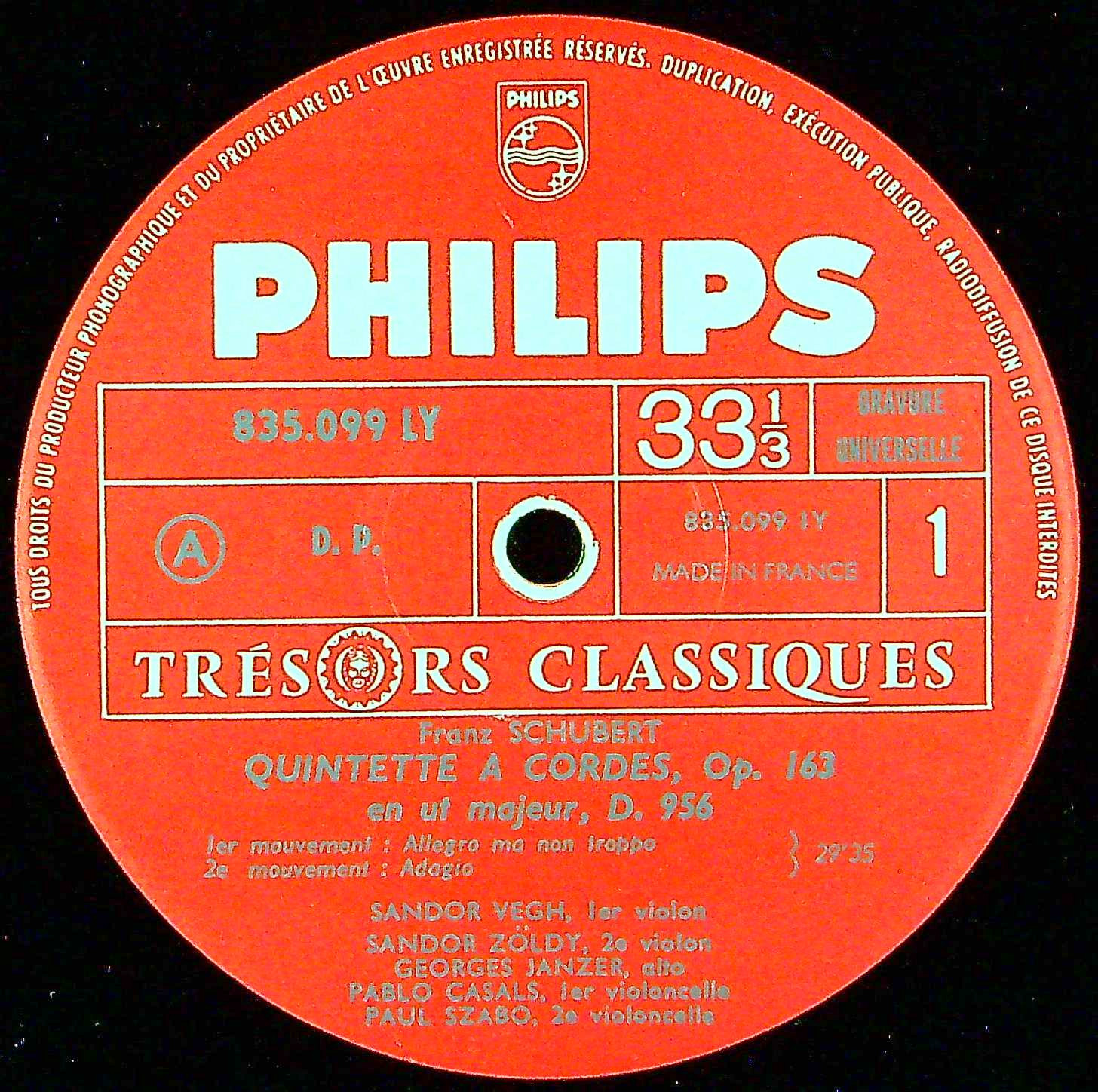 商品コード:1385-033[PHILIPS] ヴェーグQt. P.カザルス(vc)/ シューベルト:弦楽五重奏曲D.956