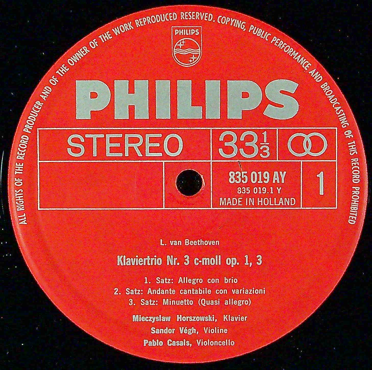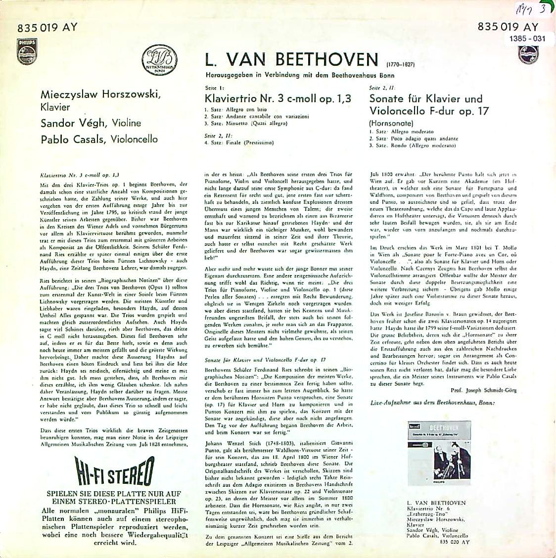 商品コード:1385-031[PHILIPS] カザルス(vc) ホルショフスキ(pf) ヴェーグ(vn) / ベートーヴェン:Pfトリオ3番Op.1-3, VcソナタOp.17