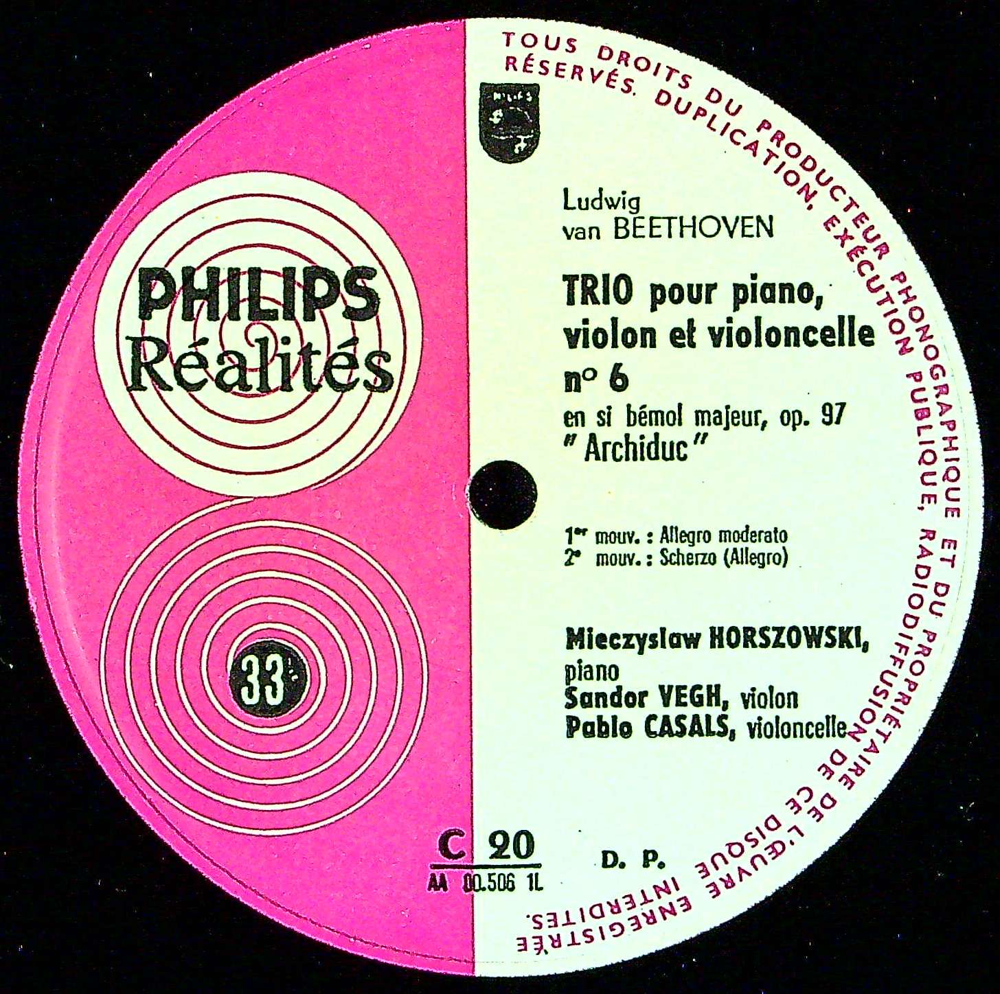 商品コード:1385-030[PHILIPS] カザルス(vc) ホルショフスキ(pf) ヴェーグ(vn) / ベートーヴェン:Pf三重奏曲7番Op.97「大公」