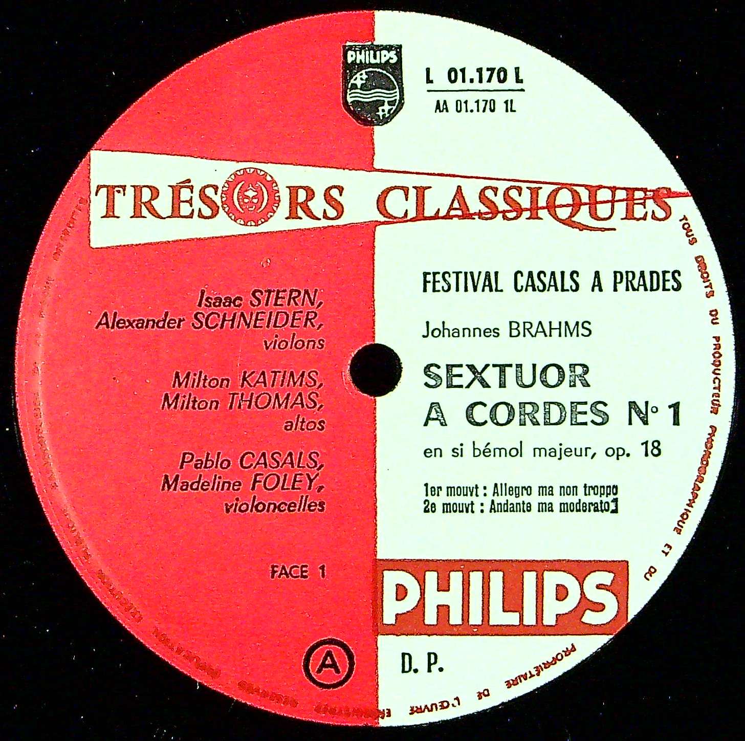 商品コード:1385-028b[PHILIPS] P.カザルス(vc) I.スターン, A.シュナイダー(vn) 他 / ブラームス:弦楽六重奏曲1番Op.18