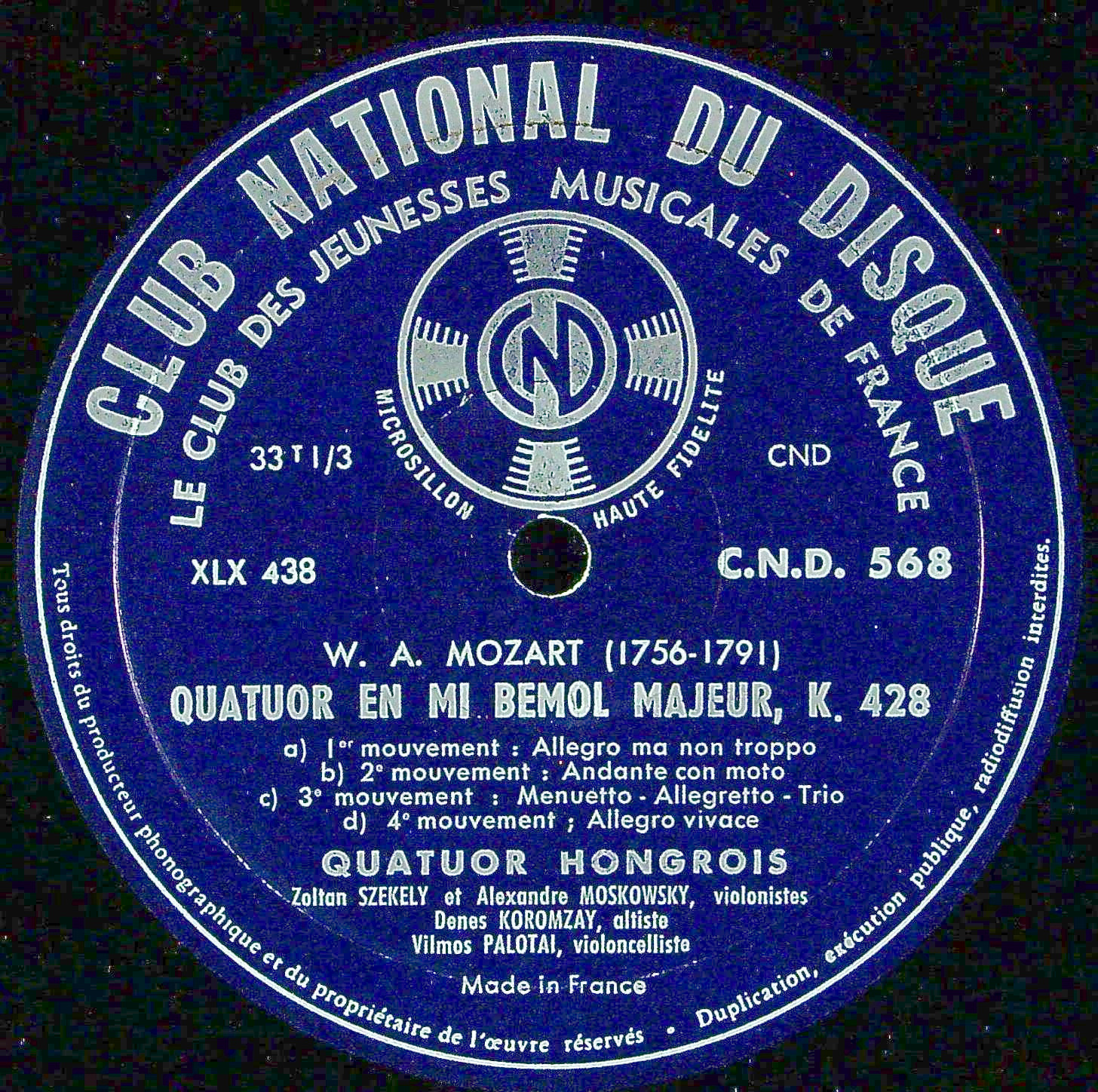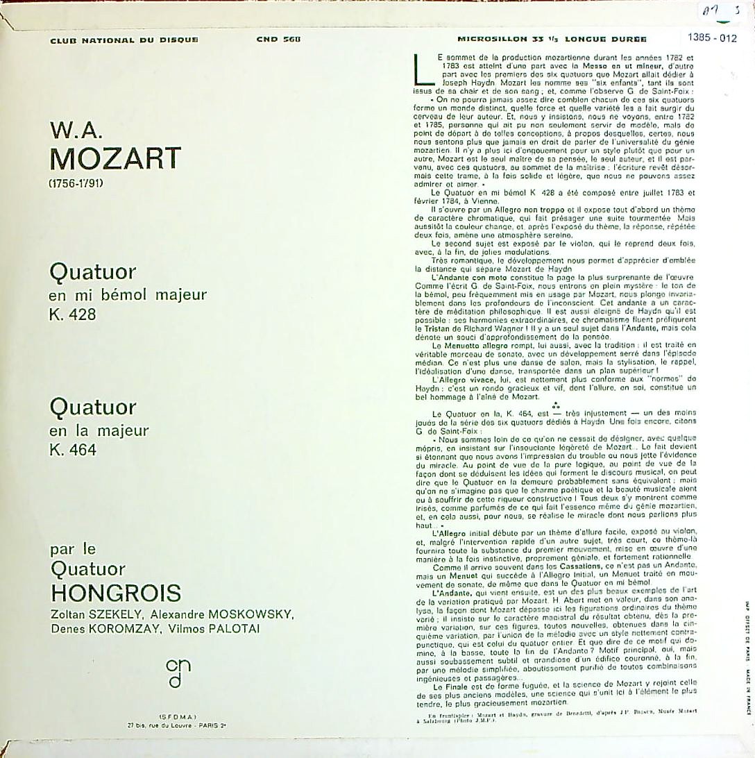 商品コード:1385-012[CLUB NATIONAL] ハンガリーQt. / モーツァルト:弦楽四重奏曲16番K.428, 18番K.464