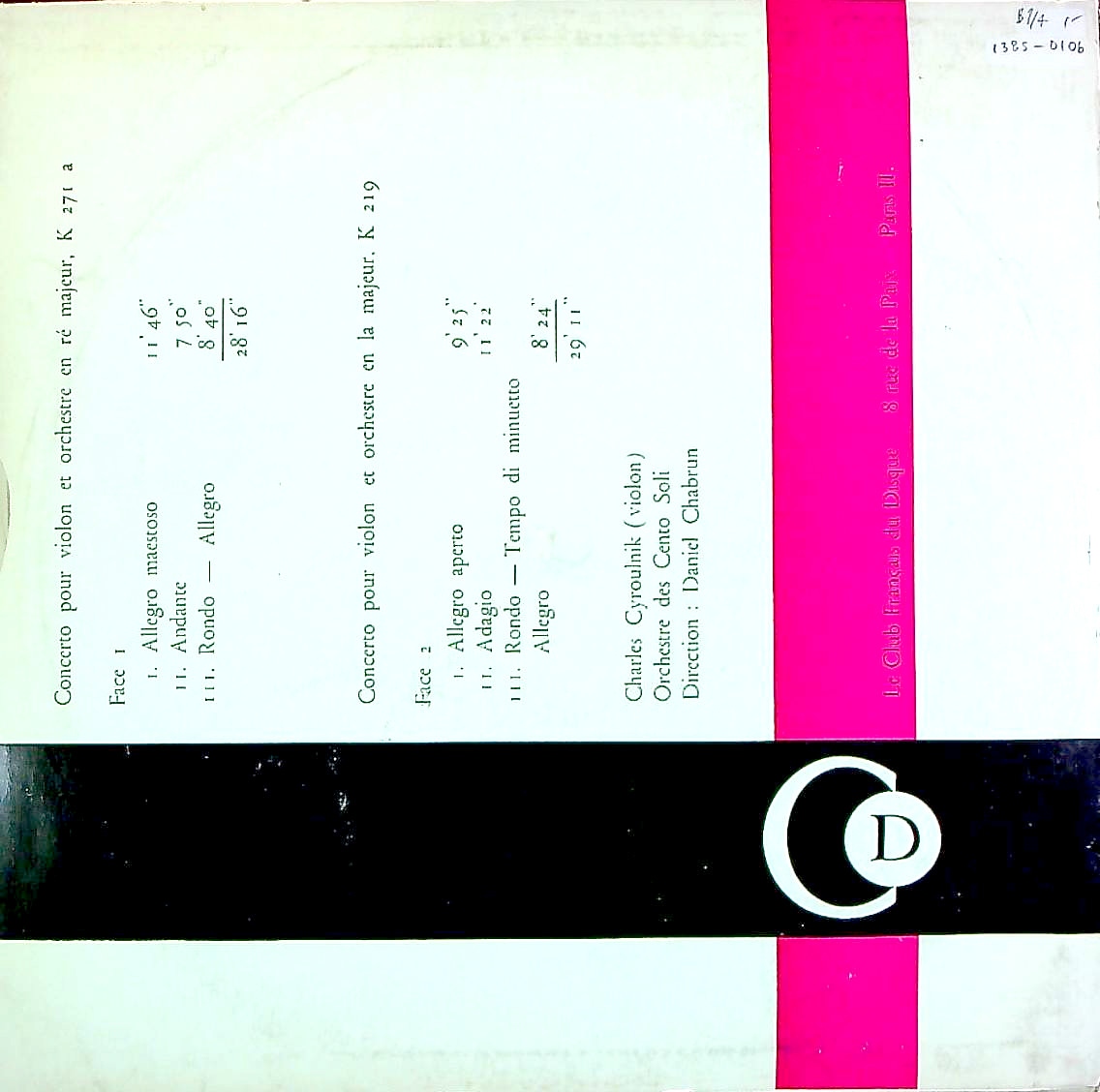商品コード:1385-010b[Club Français] C.シルルニク(vn) / モーツァルト:Vn協奏曲7番K.271a, 5番K.219「トルコ風」