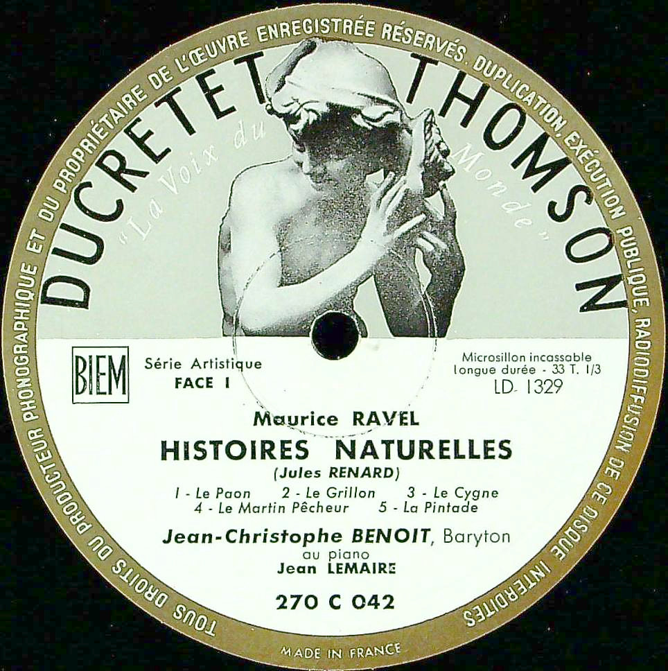 商品コード:1385-002[Ducretet Thomson] J.C.ブノワ(br) / ラヴェル:歌曲集/博物誌, マダガスカル先住民の歌