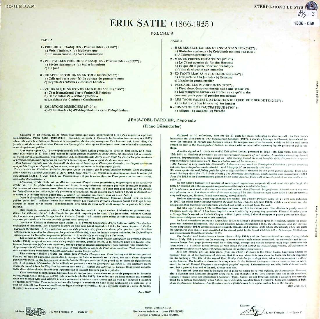 商品コード:1386-058[BAM] J.J.バルビエ(pf) / サティ:Pf作品集vol.4/犬のためぶよぶよした前奏曲 他
