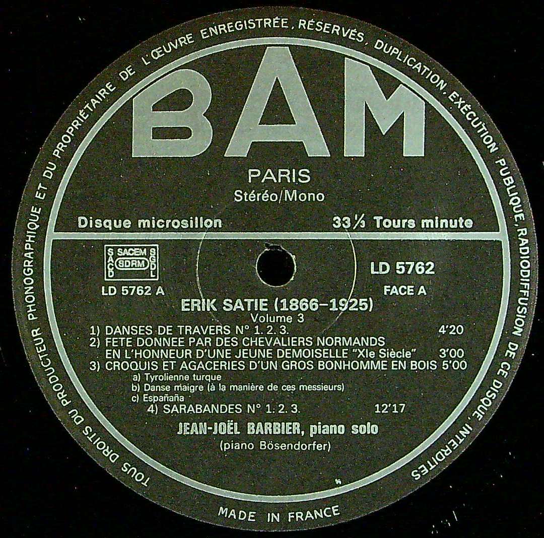 商品コード:1386-057b[BAM] J.J.バルビエ(pf) / サティ:Pf作品集vol.3/冷たい小品, スケッチとからかい, 3つのサラバンド, 最後から2番目の思想 他