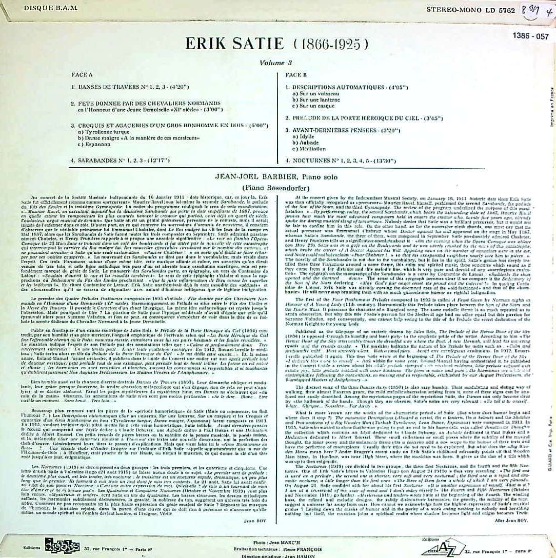 商品コード:1386-057[BAM] J.J.バルビエ(pf) / サティ:Pf作品集vol.3/冷たい小品, スケッチとからかい, 3つのサラバンド, 最後から2番目の思想 他