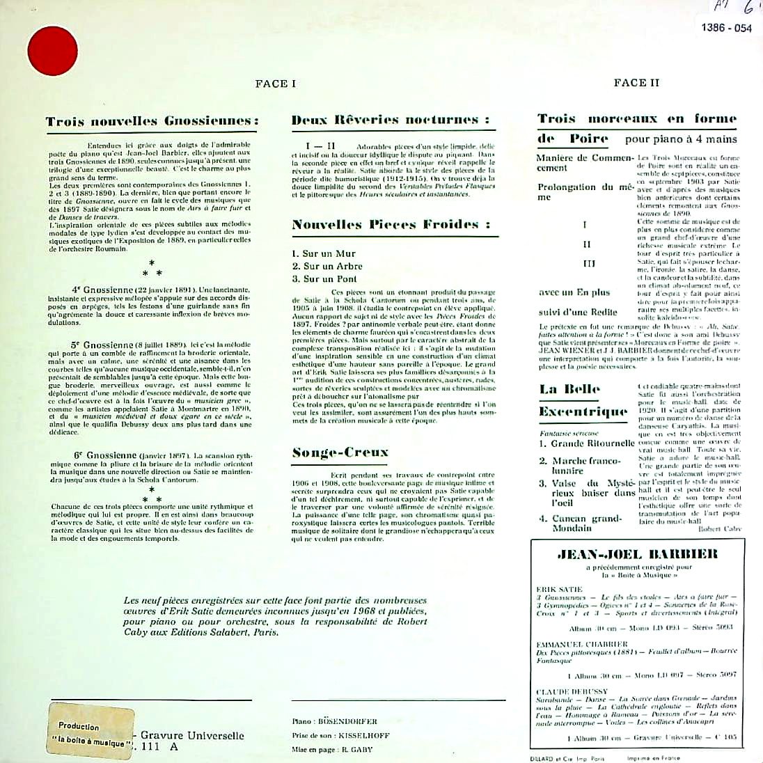 商品コード:1386-054[BAM] J.J.バルビエ(pf) 他/ サティ:Pf曲集Vol.2/グノシエンヌ4~6番, 梨の形をした3つの小品, 新しい冷たい小品 他