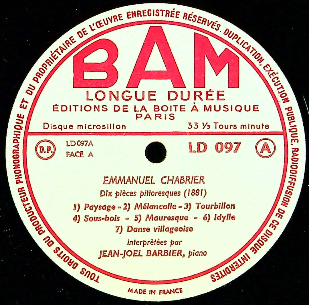 商品コード:1386-053[BAM] J.J.バルビエ(pf) / シャブリエ:Pf曲集/絵画風小品(全10曲), アルバムの綴り, 気まぐれなブーレ