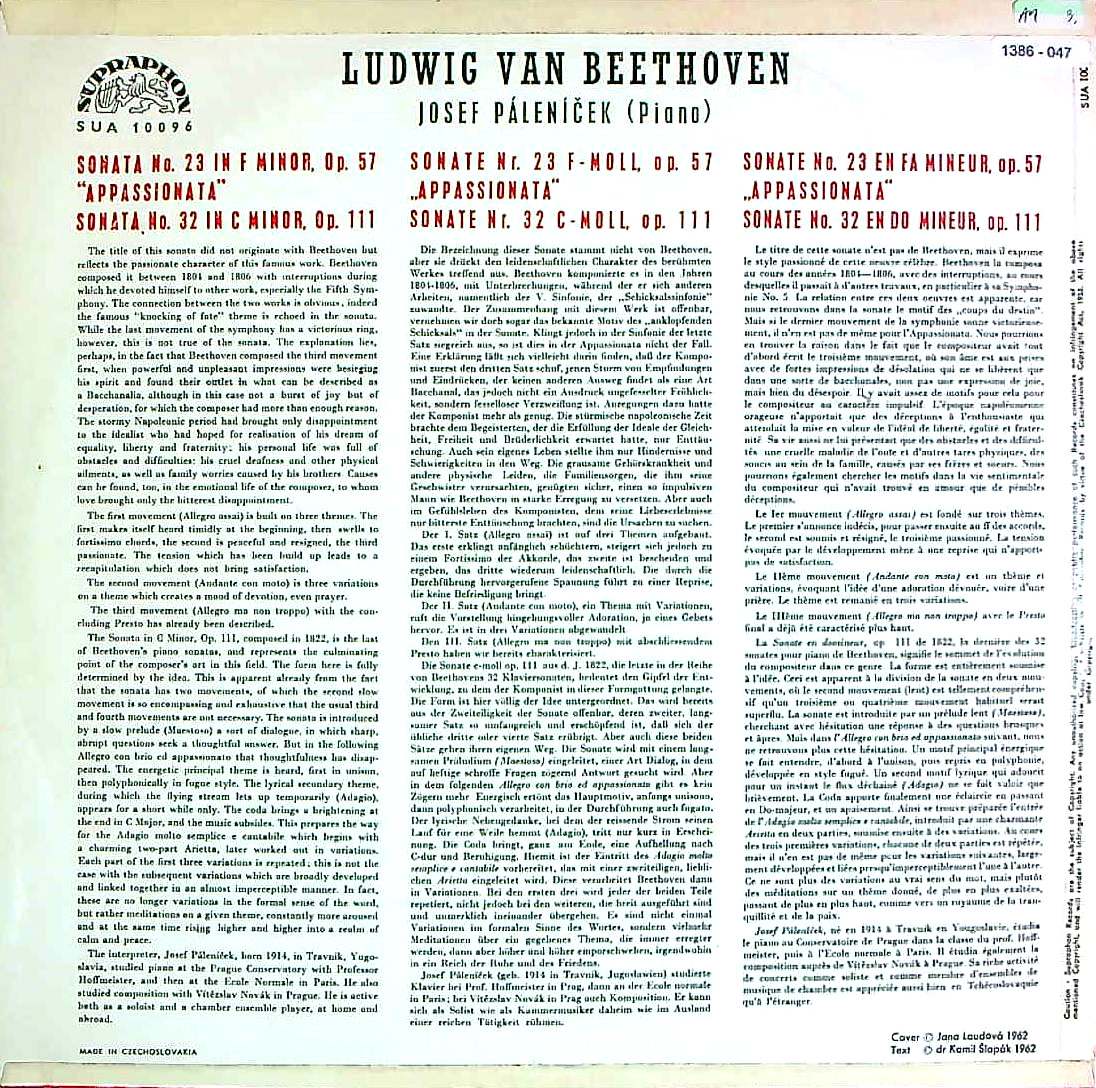 商品コード:1386-047p[SUPRAPHON] J.パーレニーチェク(pf) / ベートーヴェン:Pfソナタ23番「熱情」, 32番Op.111